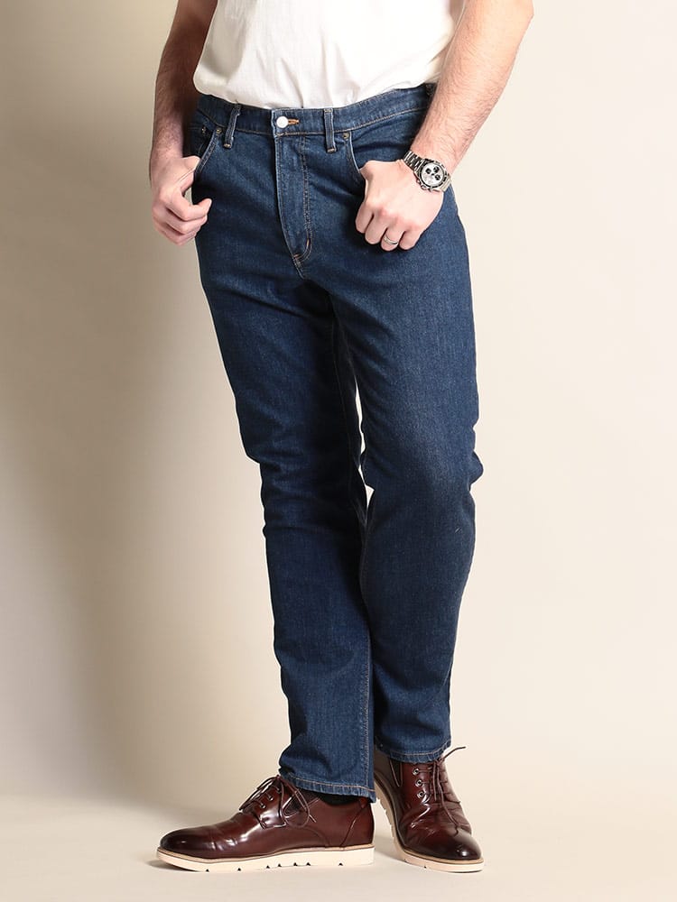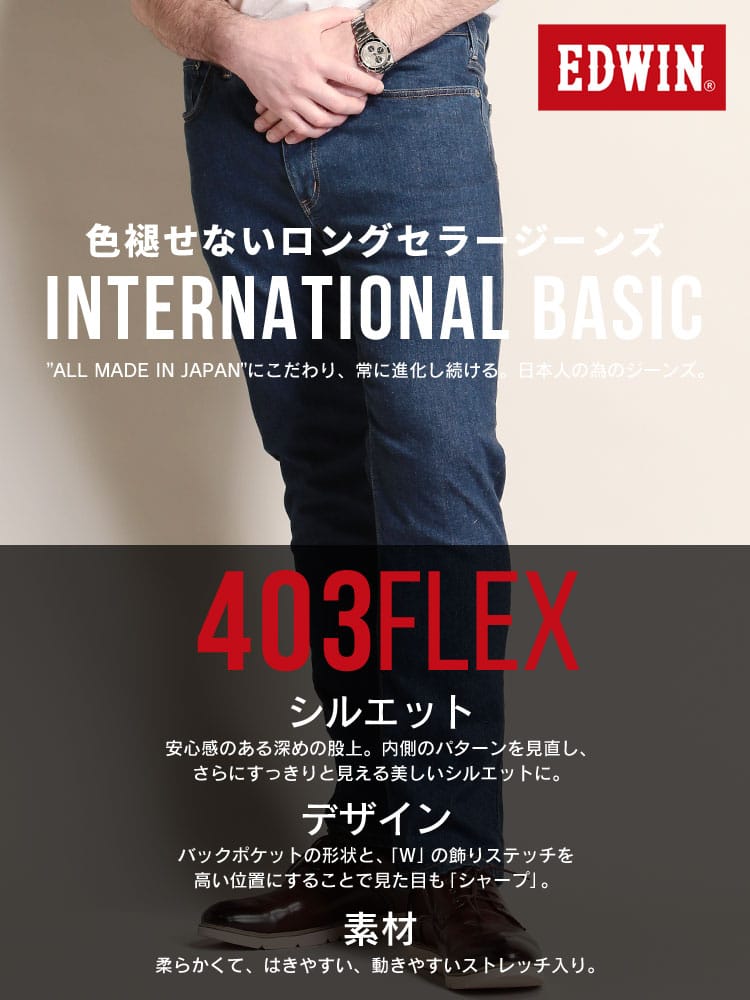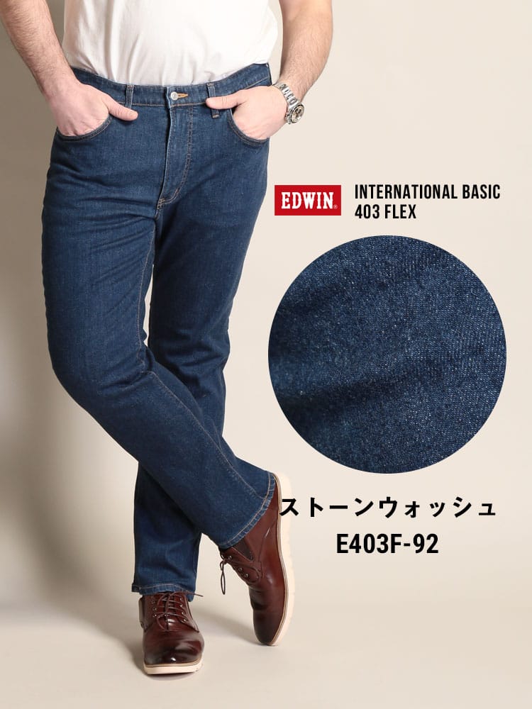 EDWINのやわらかストレッチ ストレート ジーンズ 403 FLEX。すっきりとしたストレートシルエットがきれいめな印象のパンツ。やわらかストレッチで快適な履き心地を提供します。オンスタイルの外しから、カジュアルダウンコーデまでラクにこなす1本です。