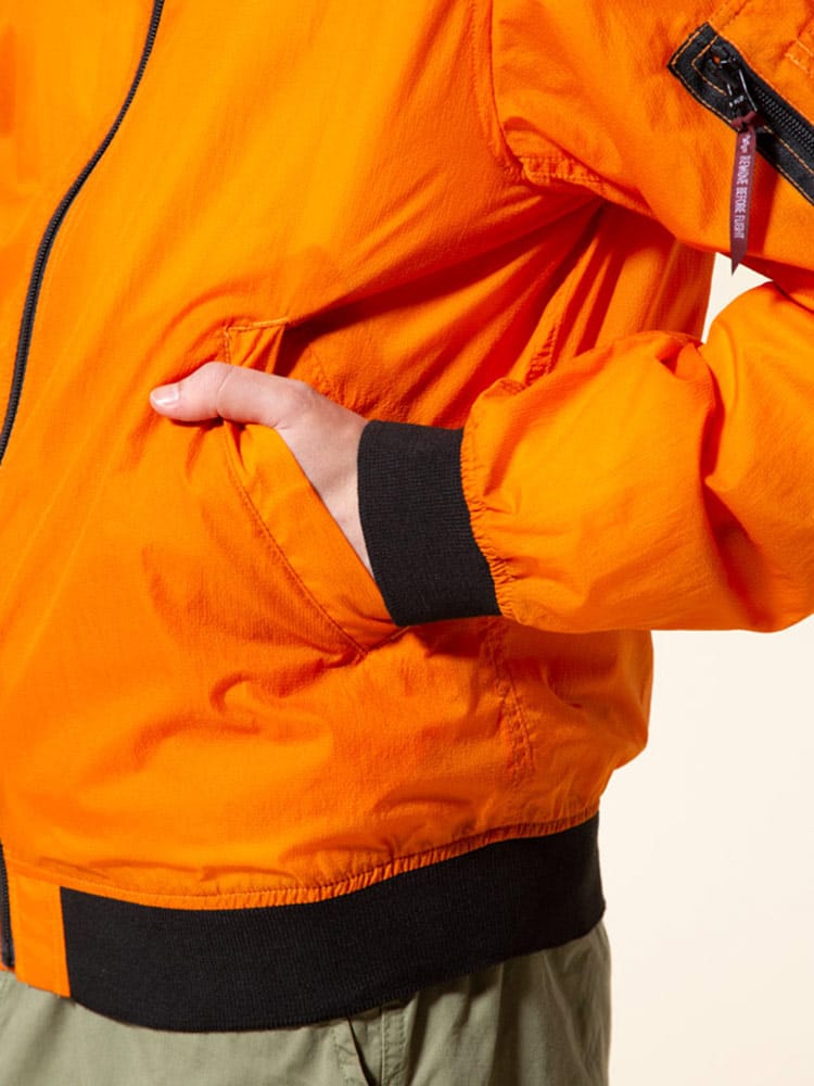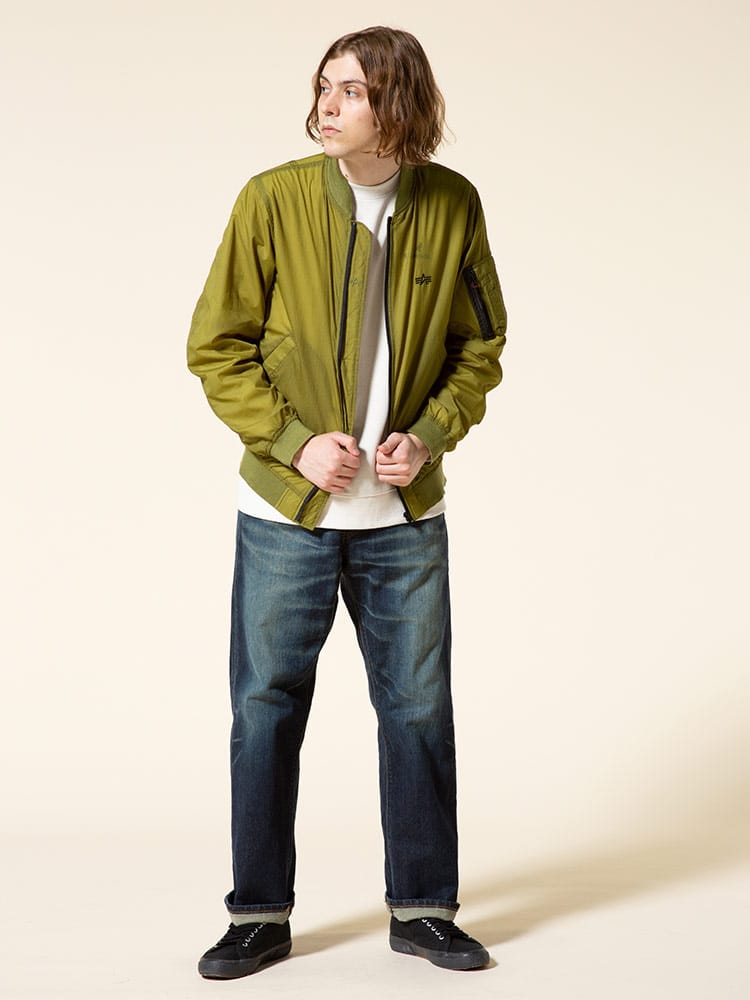 パッカブル機能を持ったALPHA INDUSTRIES INCのワンポイント フルジップ ジャケット LIGHT PACKABLE L-2B。左胸にロゴプリント。左袖にジップポケットとブランドタグ。フロントはシングルジップで開閉。薄手の生地でサッと気軽に羽織っていただけます。