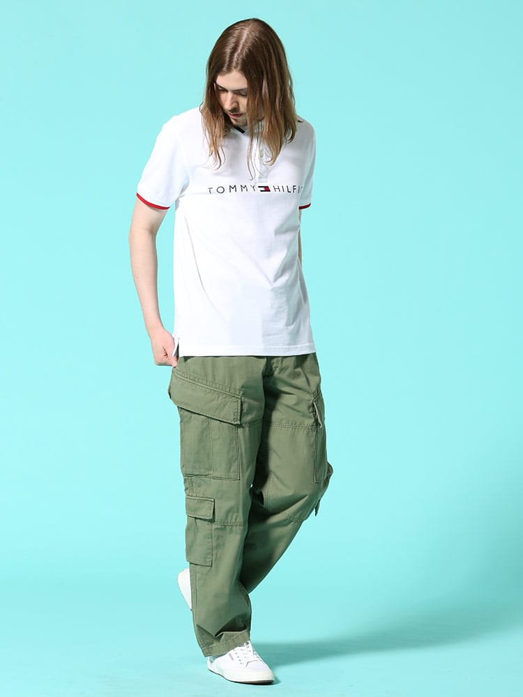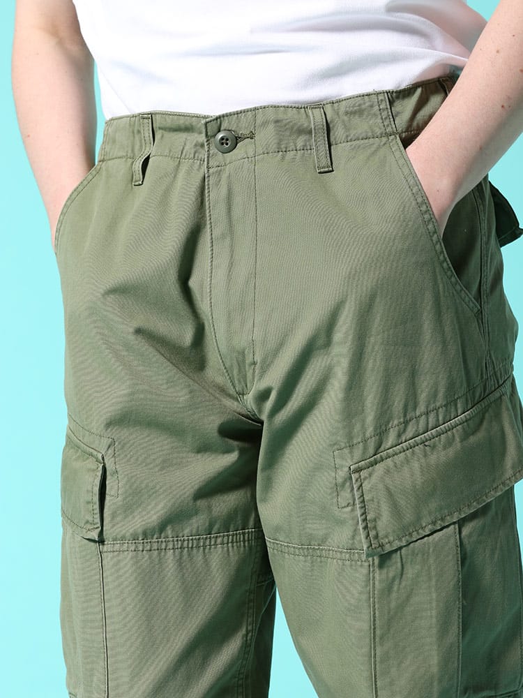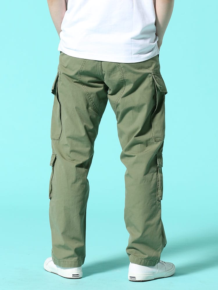 アメリカ陸軍用を基にデザインされたカーゴパンツ。コットンキャンバス素材を使用した多ポケットカーゴパンツ。太めなワタリから、裾にかけて絞った膝下がスッキリとしたシルエットです。モンキーパッチやウエストドローコード付きなど、ミリタリーディテール仕様となっています。。