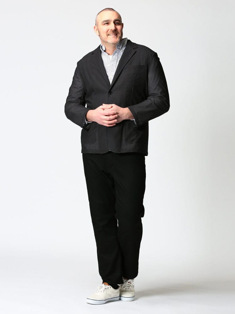 | モデルデータ | 身長:195cm / B:120 / W:109 / H:116 / S:31.0cm |