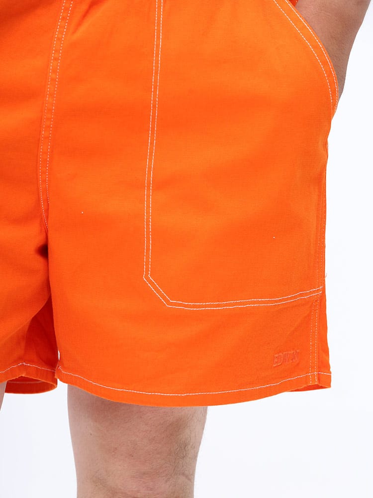 EDWINの前閉じ ショートパンツ ATHLETIC。ガシガシ洗えて気楽に穿ける休日に大活躍のショートパンツです。ウエストゴムで脱ぎ穿きも簡単。内側にドローコードが付いており、微調整もできます。ストレッチが入っているので、部屋でも外でもノンストレス。ベーシックなTシャツとの相性抜群です。左裾にロゴ刺繍。