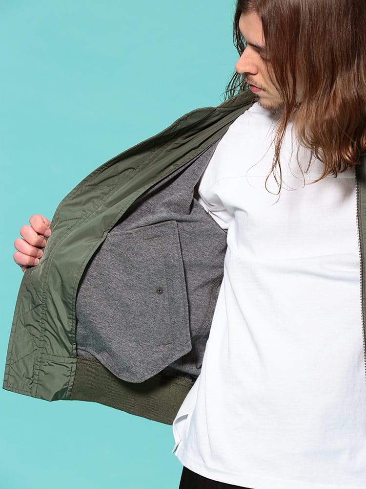 ALPHA INDUSTRIES INCのフルジップ ボンディング ジャケット BONDING L-2B。ミリタリー由来の無骨なデザインがタフさを演出。どんなスタイルにも合わせられる使い勝手のいいデザインが魅力のL-2Bジャケット。フロントの裏当てに施されたワンポイント刺繍と袖のALPHAタグがさりげないアクセントになっています。すっきりとした着丈でコーデがもたつかないのも◎。ライニングには肌触りの良いカットソー素材が使われています。