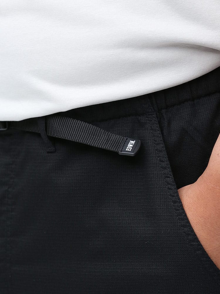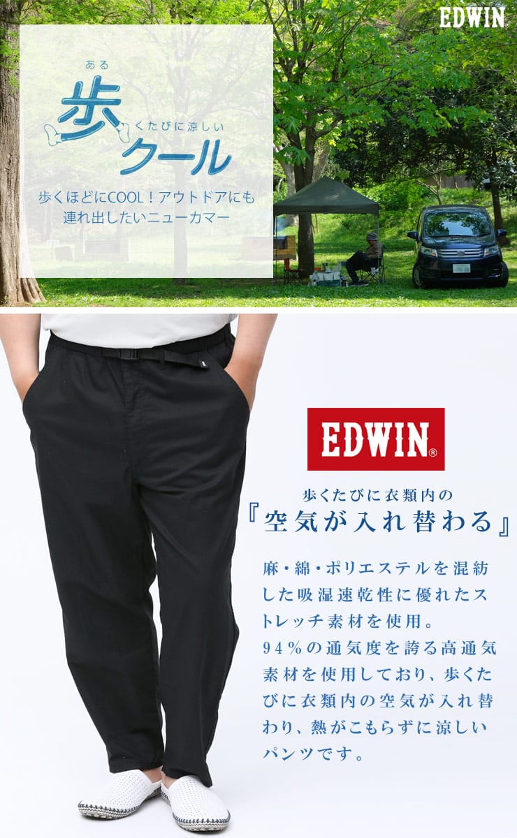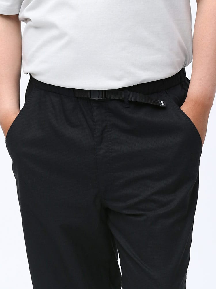 歩くたびに涼しい「歩クール」素材を使用したイージーパンツ。片手でフィット感の調節が可能なウェビングベルトを備えるイージーパンツ。シルエットは腰回りや太ももはゆったりでヒザからスソにかけて、少し細くなるレギュラーテーパード。風通しの良いメッシュ構造と三者混紡(麻・綿・ポリエステル)の素材で、一日中快適に過ごせます。