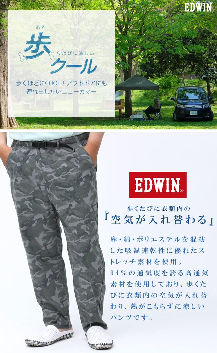 歩くたびに涼しい「歩クール」素材を使用したイージーパンツ。片手でフィット感の調節が可能なウェビングベルトを備えるイージーパンツ。シルエットは腰回りや太ももはゆったりでヒザからスソにかけて、少し細くなるレギュラーテーパード。風通しの良いメッシュ構造と三者混紡(麻・綿・ポリエステル)の素材で、一日中快適に過ごせます。