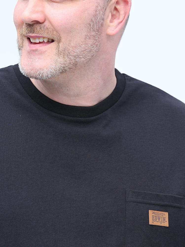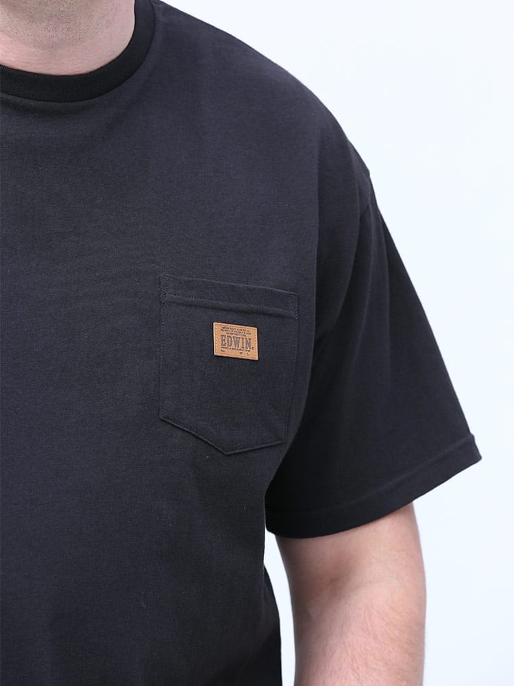 ワンポイントロゴデザインのEDWINのポケット付き クルーネック 半袖 Tシャツです。左胸にポケットとラベルが付いたシンプルなデザイン。首元はベーシックなクルーネック。しっかりとしたコットン生地を使用し、丈夫で着心地抜群です。シンプルなデザインはどんなスタイルにも合わせていただけます。