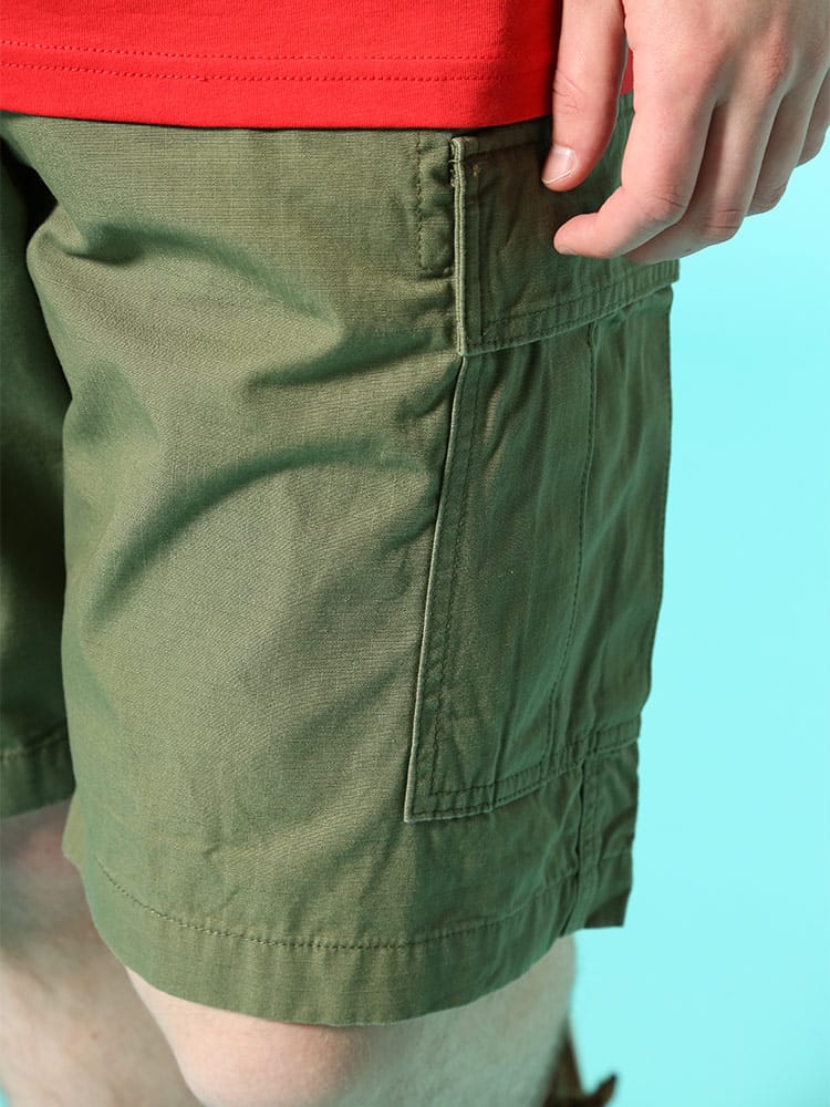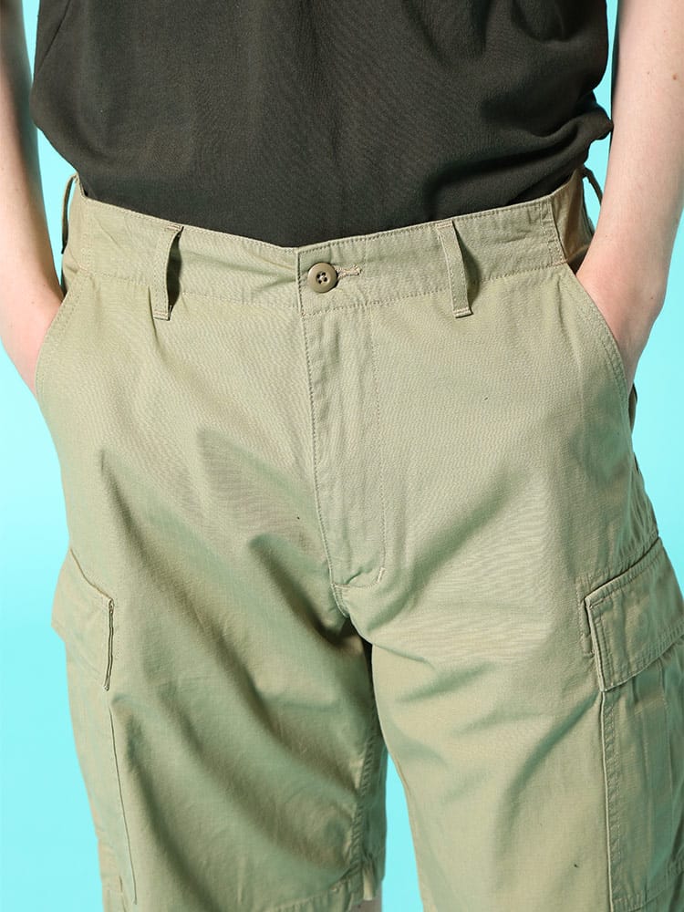 ミリタリーパンツの中でもベーシックで人気ある6ポケットタイプをショーツにした王道デザイン。”ALPHAのショーツ持っていない””ベーシックなショーツが欲しい”そんな方へは特におすすめ!サンダルやスニーカーで合わせたカジュアルコーデに最適です。バック右ポケット付近にブランドタグ付き。