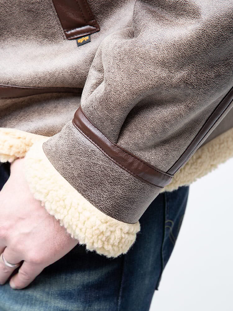 1930年代に陸軍航空隊の寒冷地用として採用されていたB-3 TYPE。リアルに見える素材感ですが、フェイクムートン仕様となっています。内側全面がボア仕様のため保温性と着心地を両立。