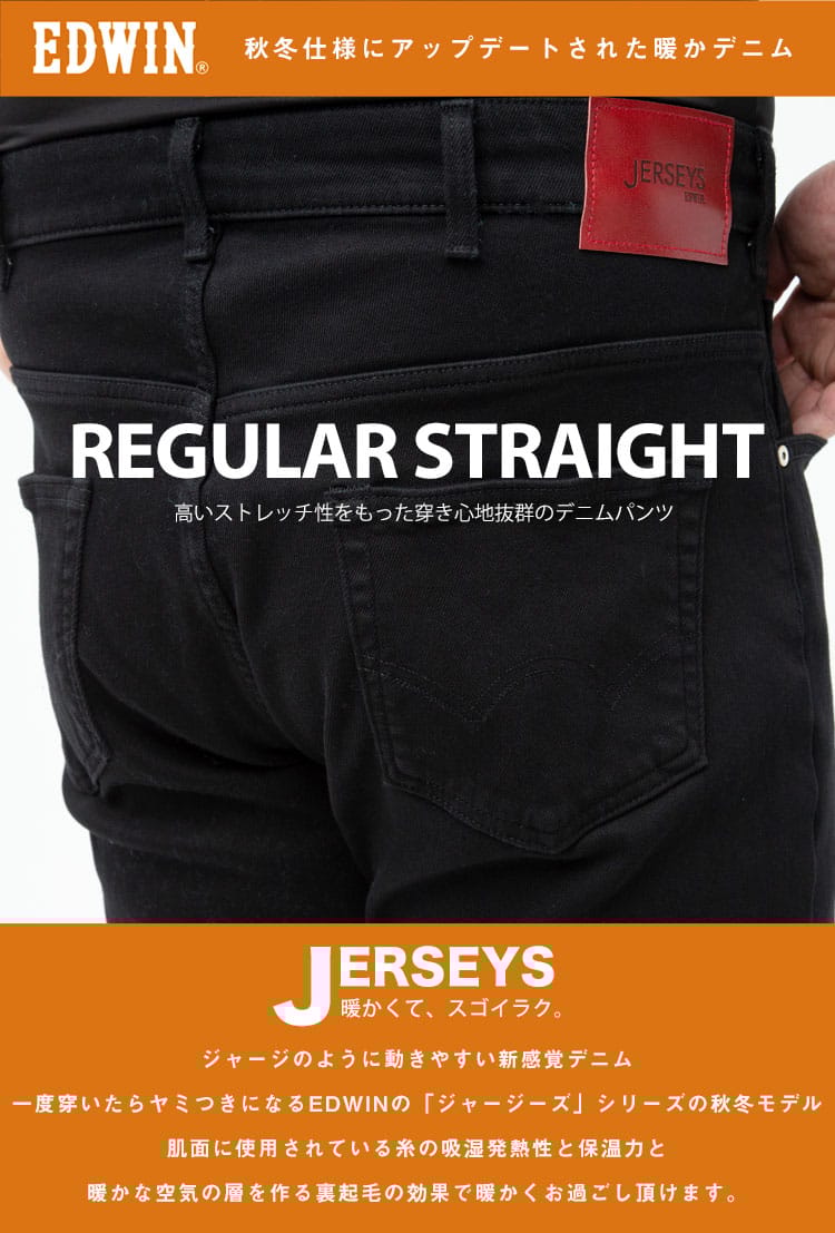 大きいサイズ メンズ EDWIN (エドウィン) JERSEYS 裏起毛 ウォーム レギュラーストレート ジーンズ BLACK