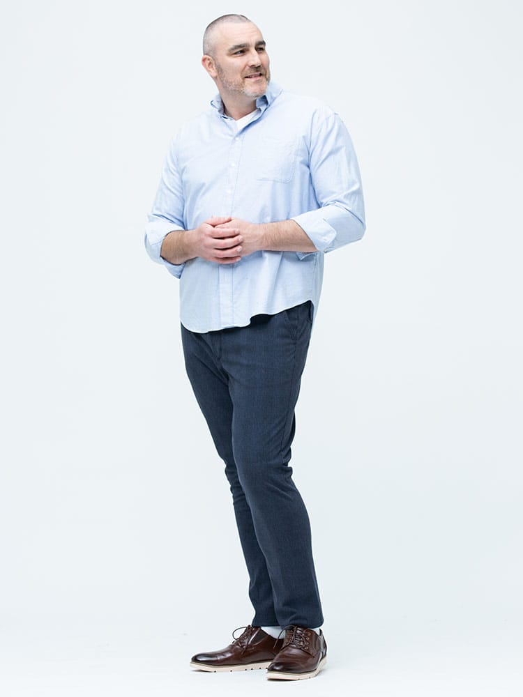 ジャケットとのバランスも絶妙なビジネスシーンに映えるデニム。