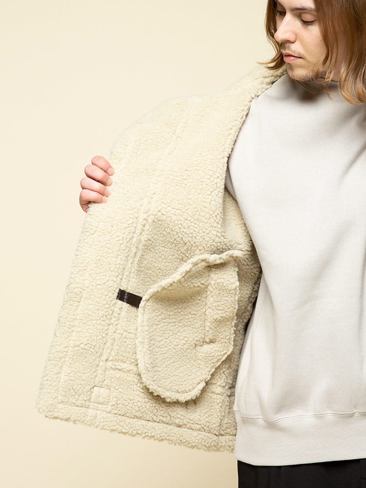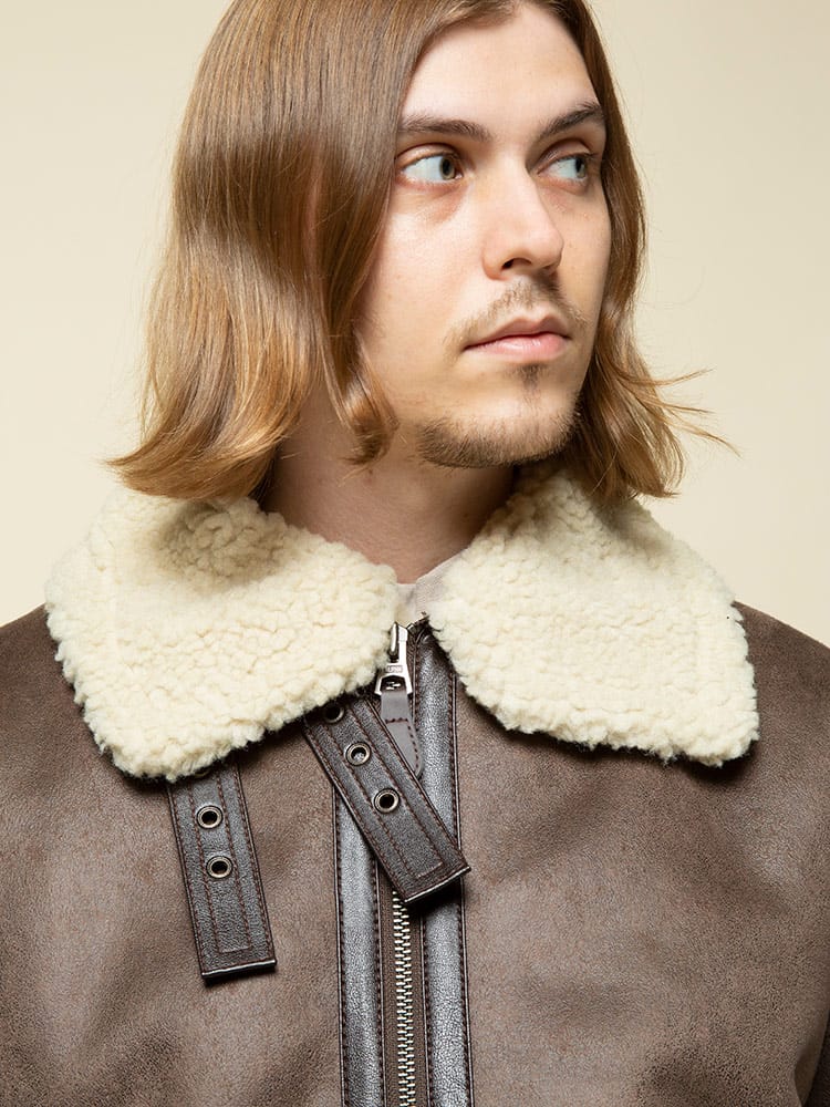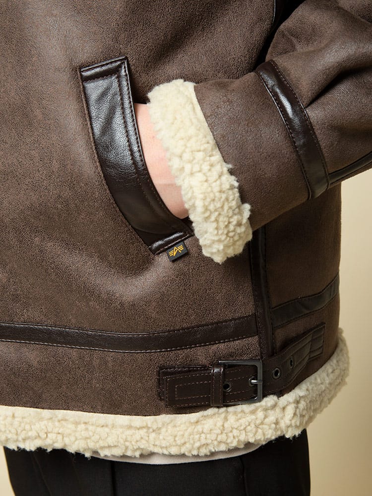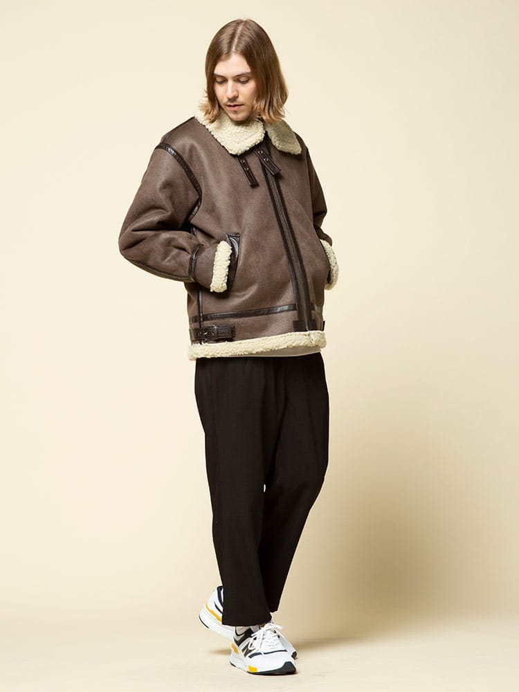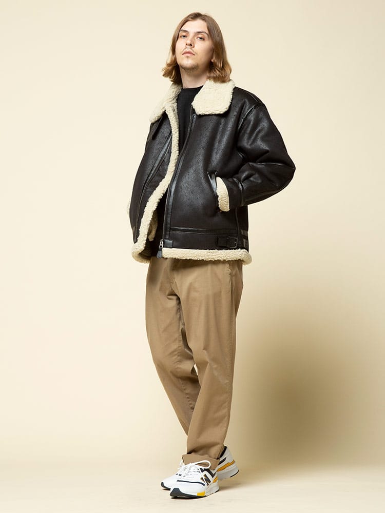 昨年大ヒットしたアウターの一つB-3が今年も登場。1930年代に陸軍航空隊の寒冷地用として採用されていたB-3 TYPE。リアルを追求した、フェイクムートン仕様。内側全面がボア仕様のため保温性と着心地を両立。襟裏のチンストラップベルトや、ウエスト両サイドのベルトなど本来のB-3ディテールを再現しています。身頃・袖裏地はフェイクボアで、保温性・防寒性を高めつつ、軽量なので着心地も抜群です。