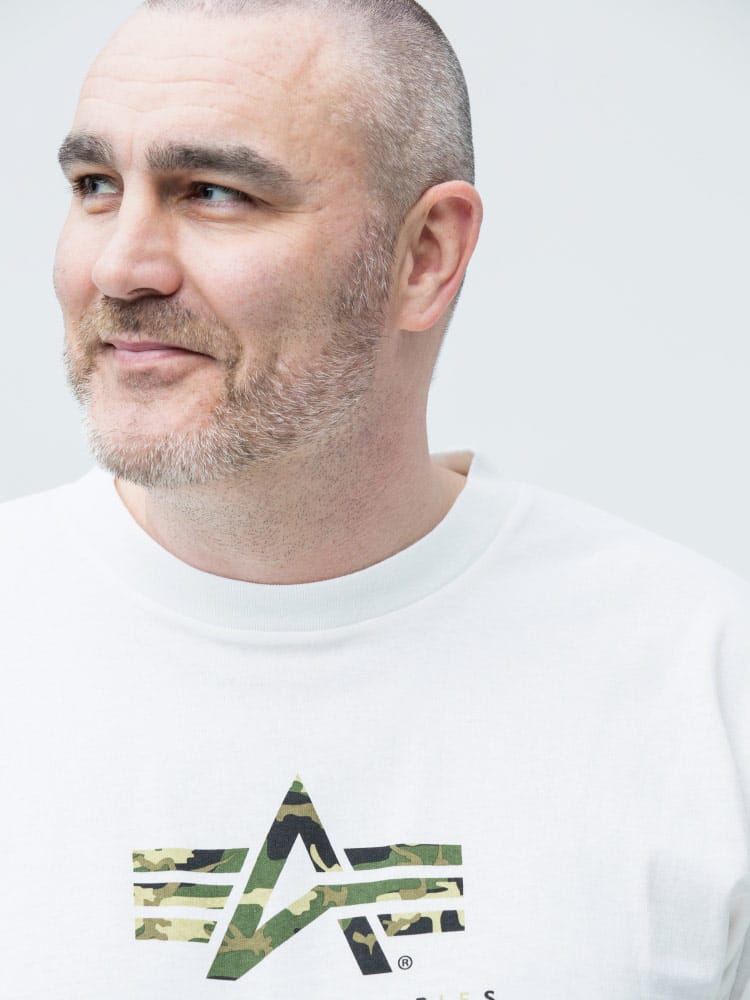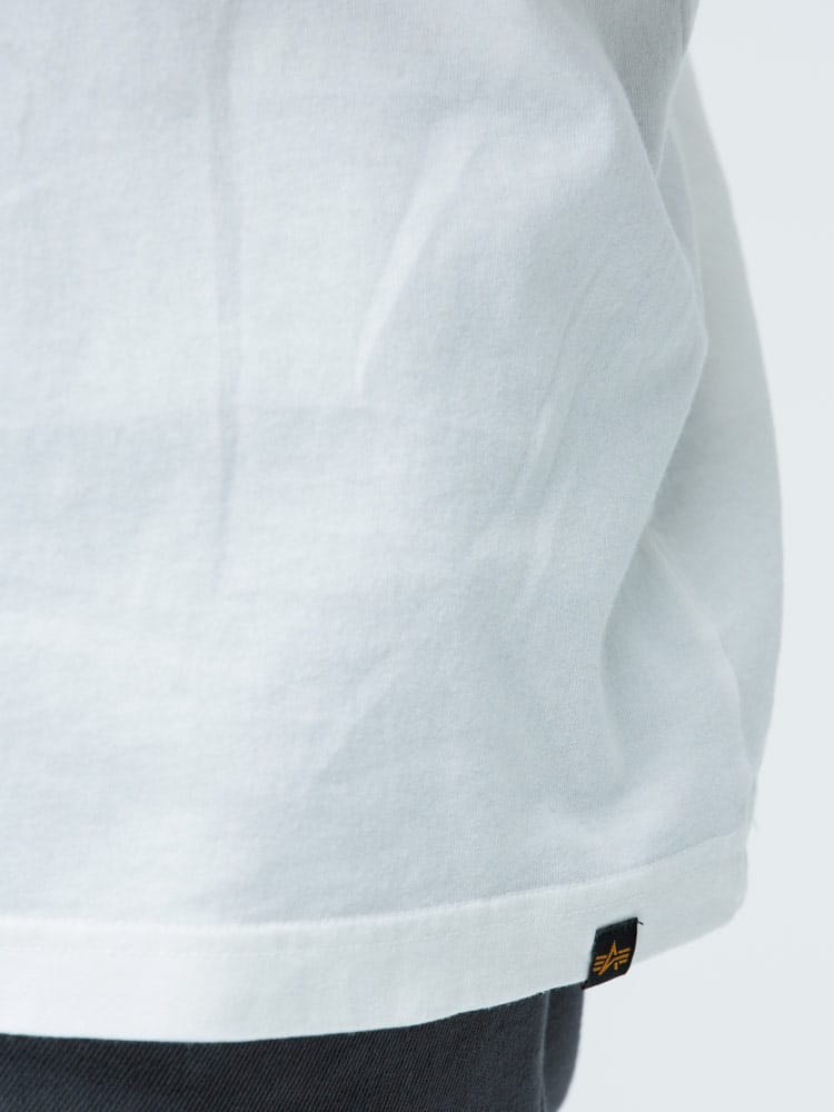 迷彩のA-MARKロゴがポイントになったALPHA INDUSTRIES INCのクルーネック 長袖 Tシャツ A-MARK。首元はベーシックなクルーネック。左裾にブランドタグ付き。袖はリブデザイン。肌触りの良いコットン生地を使用し、着心地抜群のアイテムです。