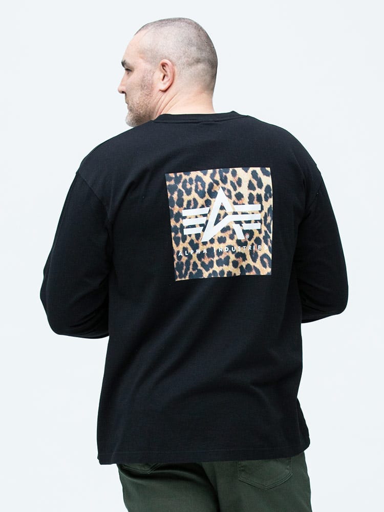 ALPHA INDUSTRIES INC アルファインダストリーズ BOXアニマルプリント クルーネック 長袖 Tシャツ ロンT BLACK 大きいサイズ メンズ