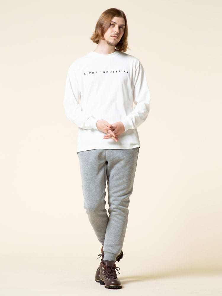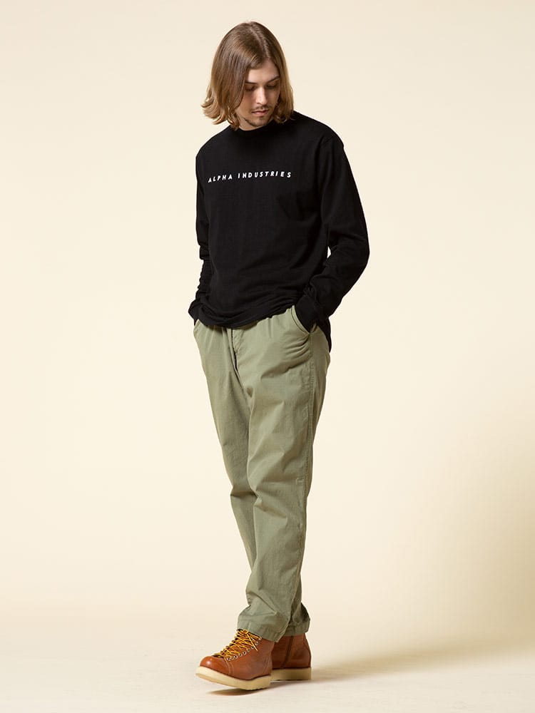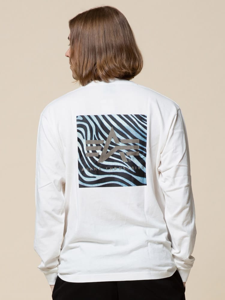バックBOXプリントが特徴的なALPHA INDUSTRIES INCのクルーネック 長袖 Tシャツです。フロントにロゴプリント。左裾にブランドタグ付き。首元はベーシックなクルーネック。袖はリブデザイン。サラッとした肌触りのコットン生地を使用しています。