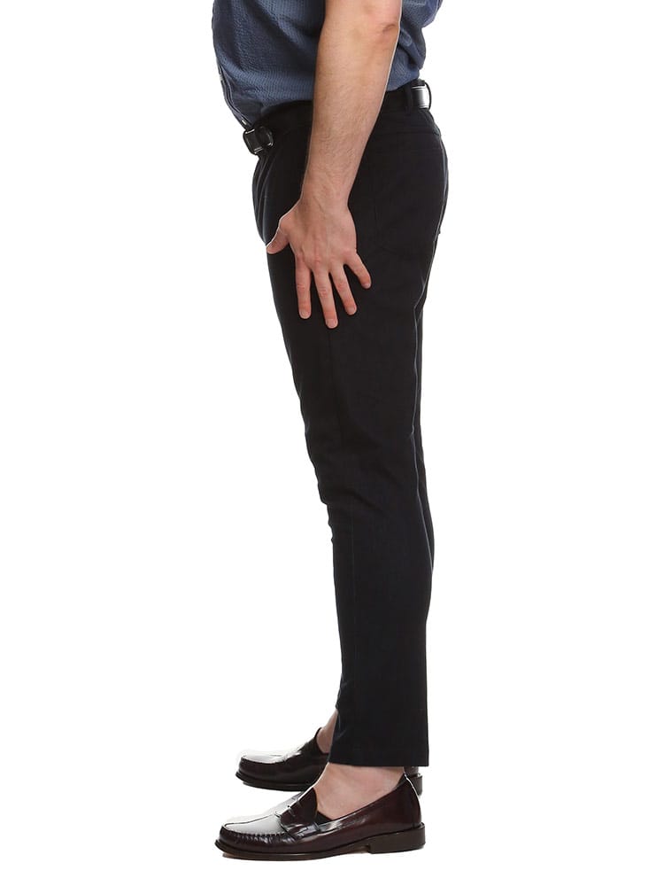 穿きやすくシワの出ないヒップラインで、裾にかけてスッキリはいていただけるスリムテーパード。