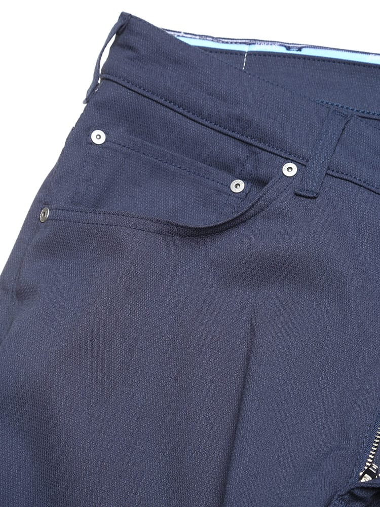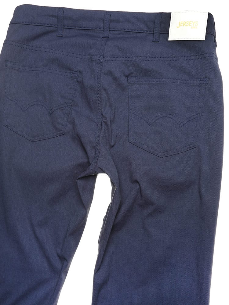 JERSEYS史上最高のストレッチ性を誇る日本のカイハラ社製 MOTION DENIMを採用。抜群のストレッチ性をもったデニム「MOTION DENIM」の組織にCOOL素材として麻・テンセル糸を織り込むことで、軽量・ドレープ性を加えた涼しい夏用パンツ。さらに、織組織の隙間に通気ポイントを作る特殊な織方法により、ムレ感無く快適な穿き心地を実現。日本製。