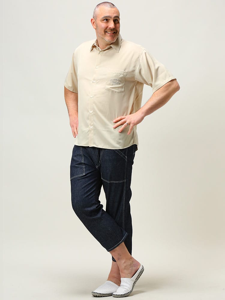 仕様 :外側ポケット数×4つ / ウエスト調節ゴム / ジップフライ