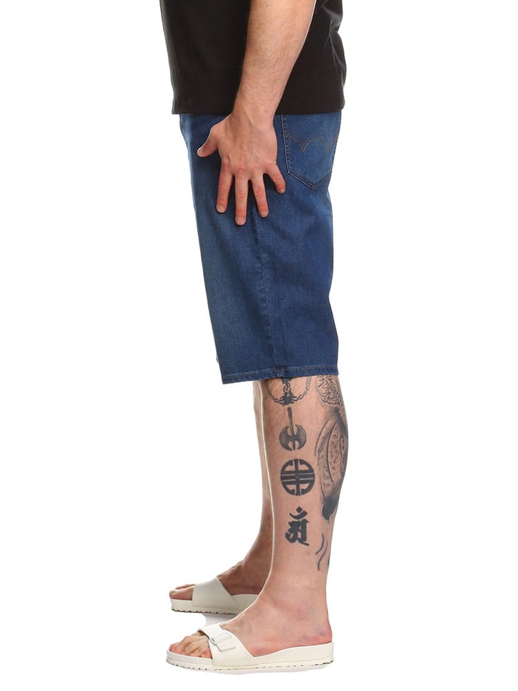 EDWINのJERSEYS ストレッチ ジップフライ ストレート デニム ショートパンツ。変則繻子組織を応用し横糸には特性の違う二種類の糸を打ち込むことで、デニムらしい表面感とニットの様な穿き心地に加え、年間快適に着用できる肌触りをプラス。抜群のストレッチ性をもったデニム『MOTION DENIM』の組織にCOOL素材として麻・テンセルを糸に織り込むことで、軽量・ドレ―プ性を加えた涼しい夏用パンツ。さらに、織組織の隙間に通気ポイントを作る特殊な織方法により、ムレ感無く快適な穿き心地を実現。