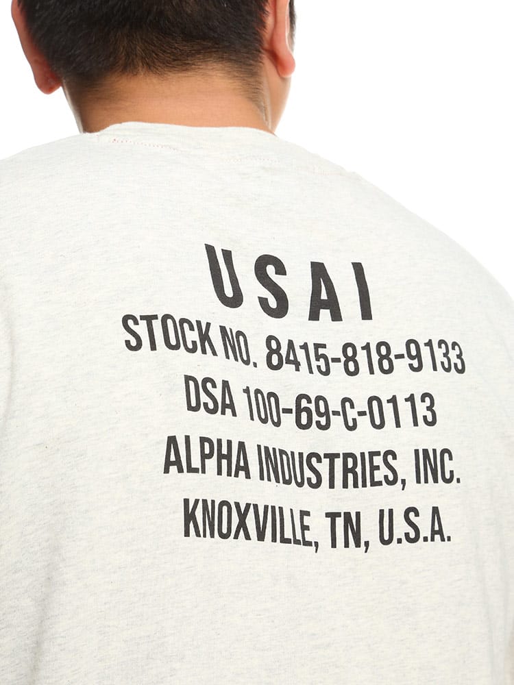 大胆なバックプリントにミリタリーフォトをデザイン。バックプリントにインパクトあるBOXブランドロゴをプリントし、胸元にはシンプルなワンポイントロゴのデザイン。BOX部分はフォトプリントを入れ込み、アメカジ感ある1枚に。フロントには胸元にブランドロゴのAマークをワンポイントプリント。クルーネックのベーシックなシルエットは、そのままではもちろんブルゾンやジャケットのインナーとしてもマルチな着回し力を発揮します。