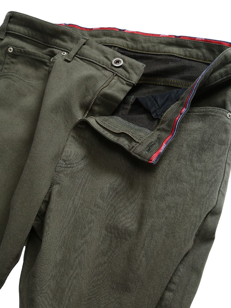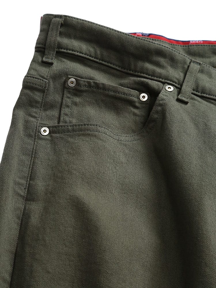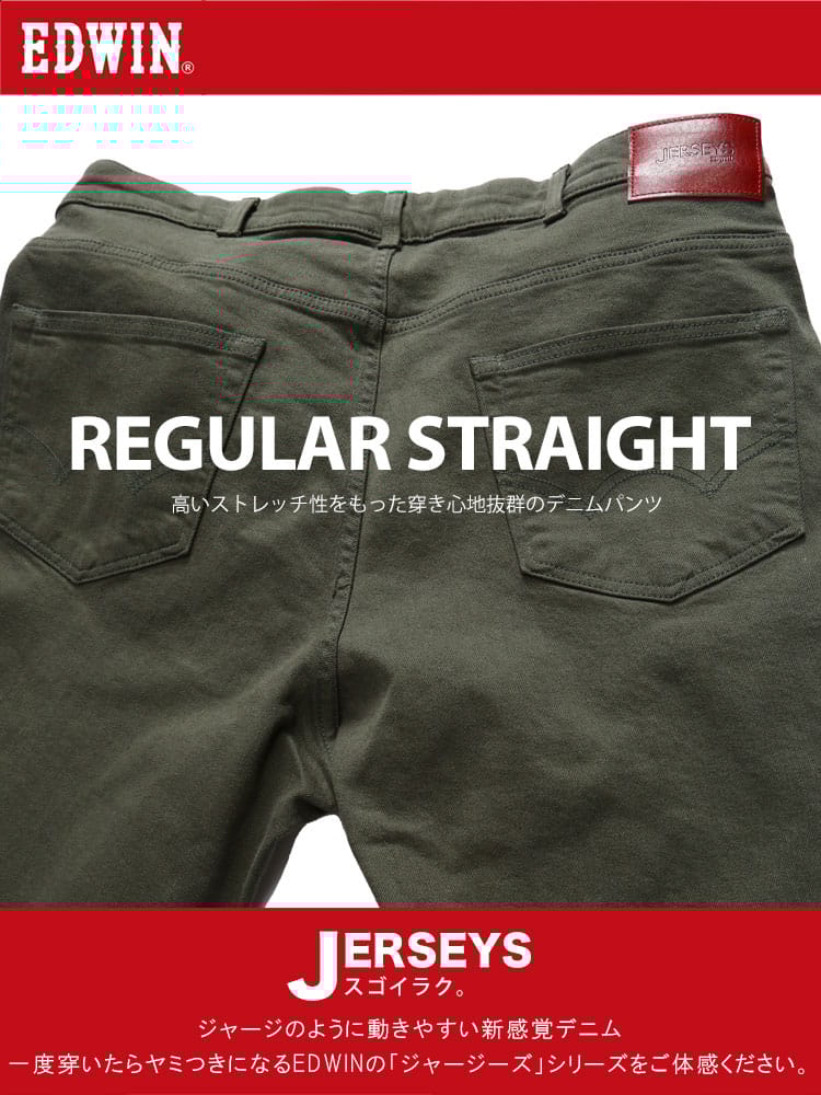 見た目はジーンズなのに、実はラク。出かける時でも部屋着でも、ラクしてカッコよく。ラクしてカワイイ。そして、一度穿いたらやみつきになる穿き心地。抜群の伸長回復率をもったデニム『MOTION DENIM』をJERSEYS用によりデニムらしさを追求した素材にグレードアップ。ストンとまっすぐ落ちるルーズなシルエットながら、裾幅を少し細く設定することで野暮ったくならないすっきりストレートシルエット。伸びるウエスト仕様!JERSEYS用に開発したストレッチ性のある接着芯地を使用することで、伸びる仕様ながら、ウエストの安定性も両立。着用時のウエストサイズの変動や体を動かす際の十分な可動域を確保できる新しい仕様です。