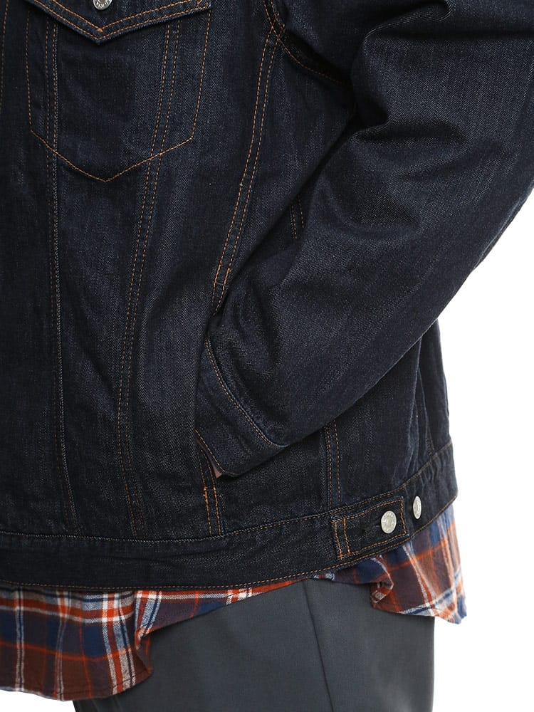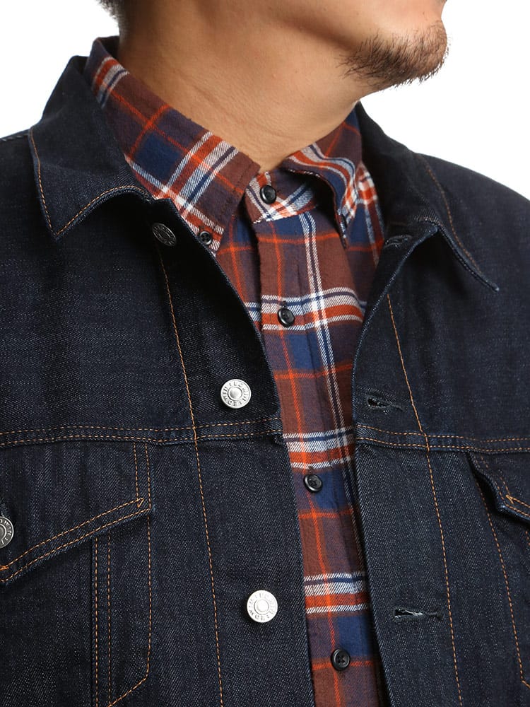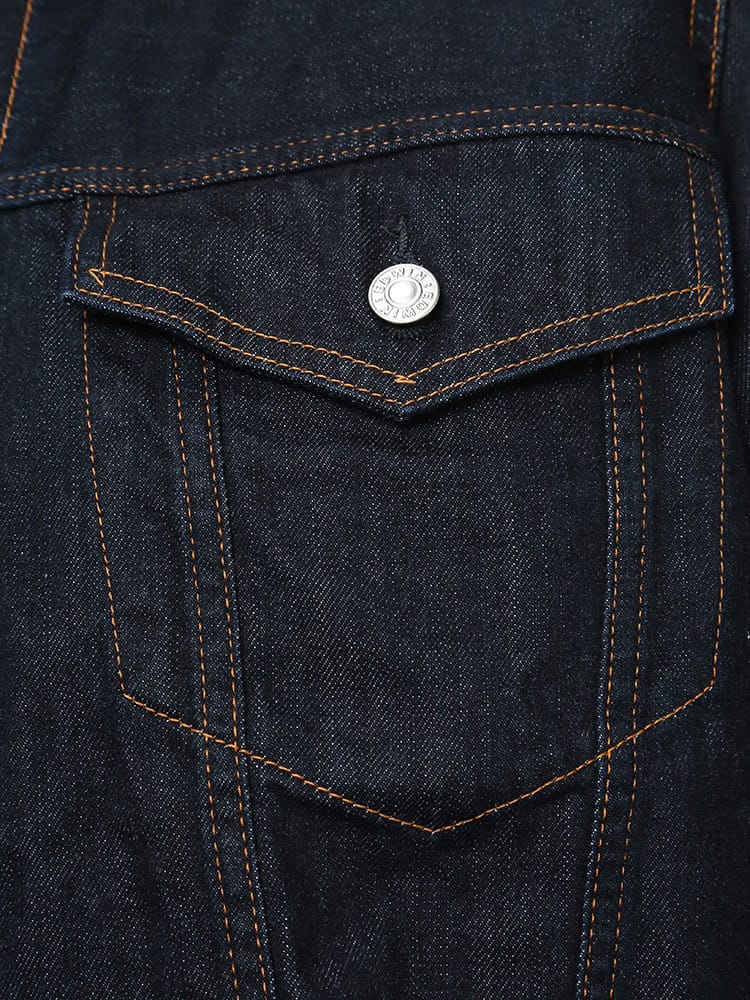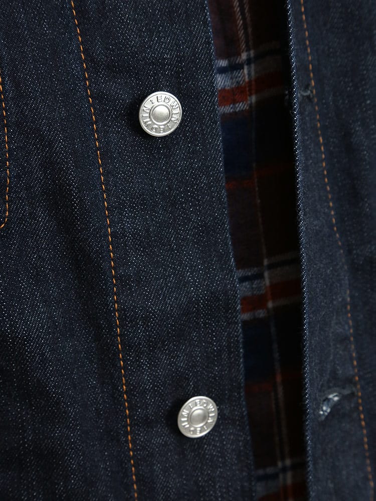 タテ糸にナチュラルなムラ糸を使用したミドルオンスの綿100%生地でデニムらしい表情のジャケット。前身頃にフラップと切り替えポケットを2つずつ配置したEDWINオリジナルGジャンを再現したデザイン。スタンダードなボックスシルエットで、アメカジスタイルはもちろん、キレイめなコーディネートのアクセントとしても使える一枚。