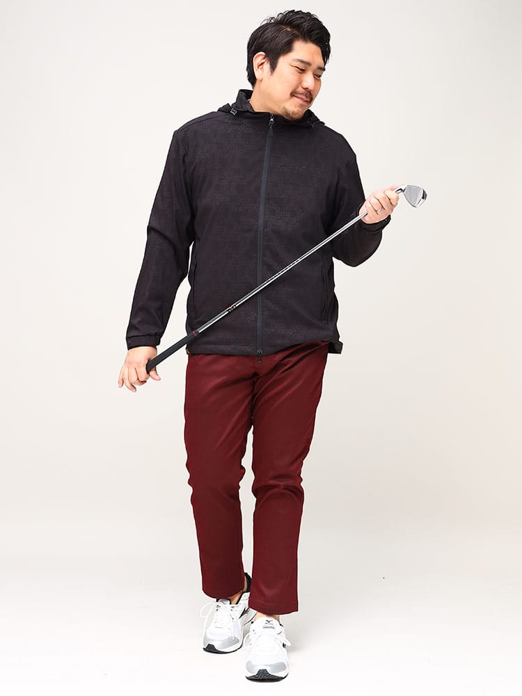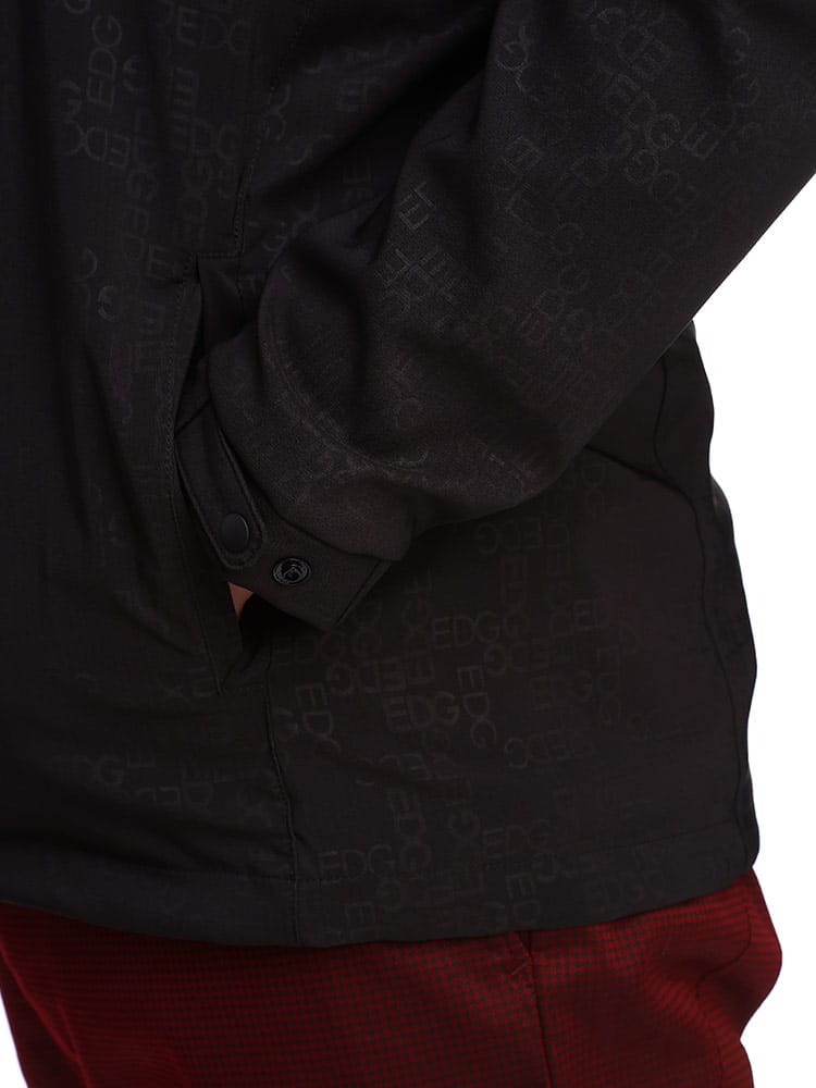 EDWINのゴルフライン「EDG」からフード付きユーティリティジャケットです。さらりと羽織れる薄手でストレッチ性のあるスポーティーなシルエットのジャケットです。フードは折りたたんでおくことができるフラップが首元内側に付いています。ウエスト部分はドローコードが入っているので絞りが可能となっています。全体に散りばめられたEDGロゴモノグラムがお洒落な一着。
