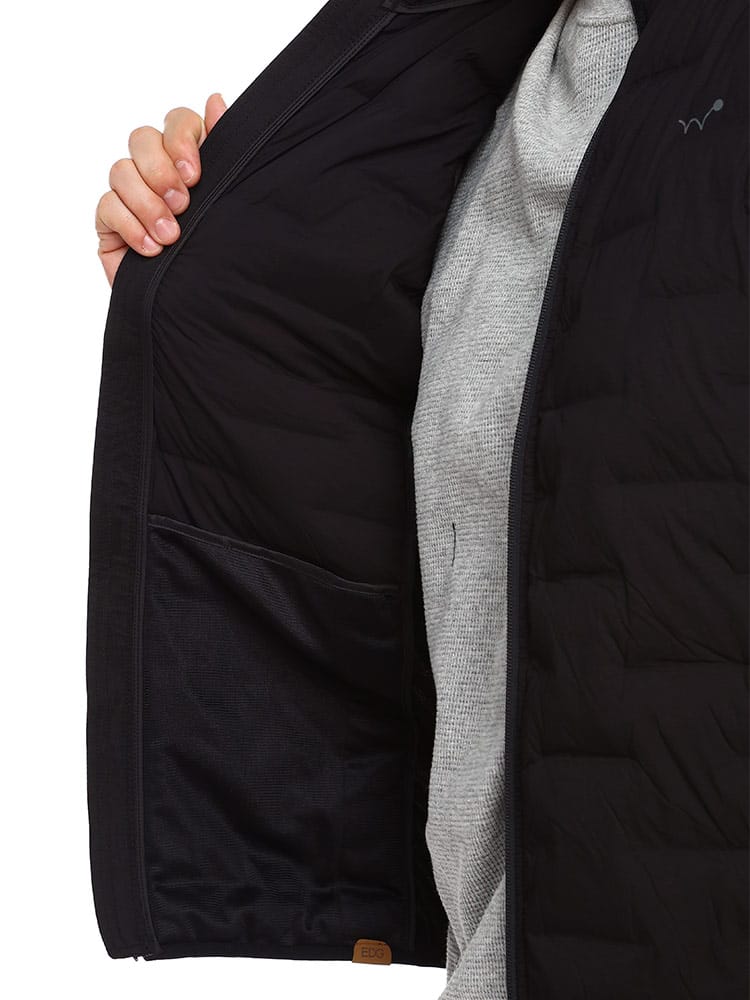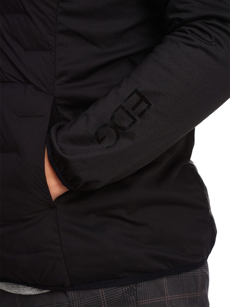 EDWINのゴルフライン「EDG」からストレッチキルトジャケットです。ボディ前後に中綿入りのキルティング素材を配し、動きやすさとあたたかさを兼ね備えたアクティブウェア。肩の動きを邪魔しないラグランタイプで、脇から裾に流れるシェイプラインの切り替えがスマートかつ動きやすい立体的なラインを形成する、ゴルフの動きに対応したつくりの一着となっています。