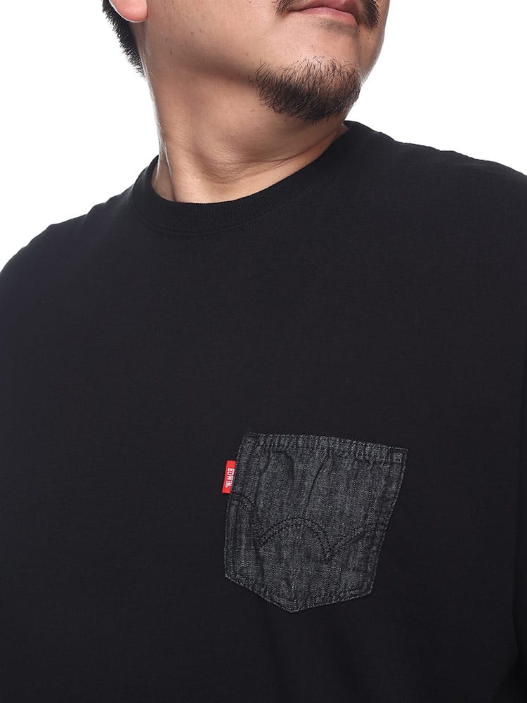 EDWINのデニムポケット半袖Tシャツです。綿100%のしっかりとした肌触りの良い生地感の半袖Tシャツ。胸ポケットはエドウィンの象徴的な、ジーンズのバックポケットとステッチを模した形となっています。