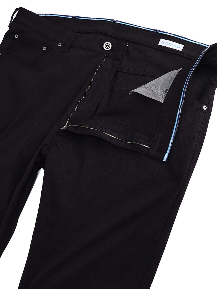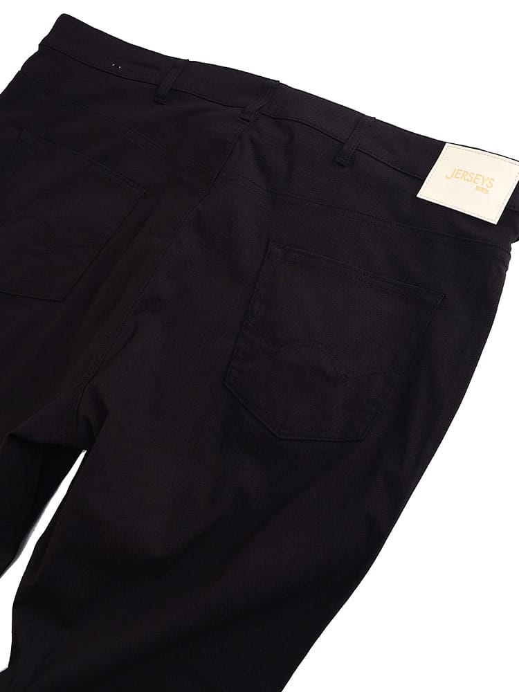 JERSEYS史上最高のストレッチ性を誇る日本のカイハラ社製 MOTION DENIMを採用。抜群のストレッチ性をもったデニム「MOTION DENIM」の組織にCOOL素材として麻・テンセル糸を織り込むことで、軽量・ドレープ性を加えた涼しい夏用パンツ。さらに、織組織の隙間に通気ポイントを作る特殊な織方法により、ムレ感無く快適な穿き心地を実現。日本製。