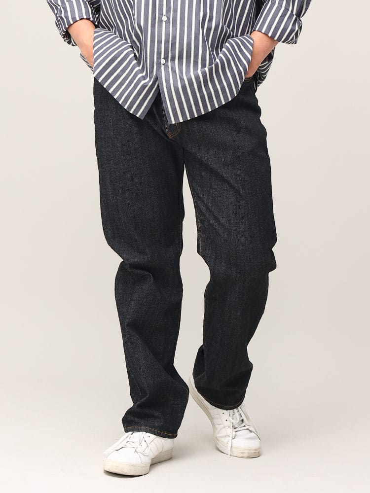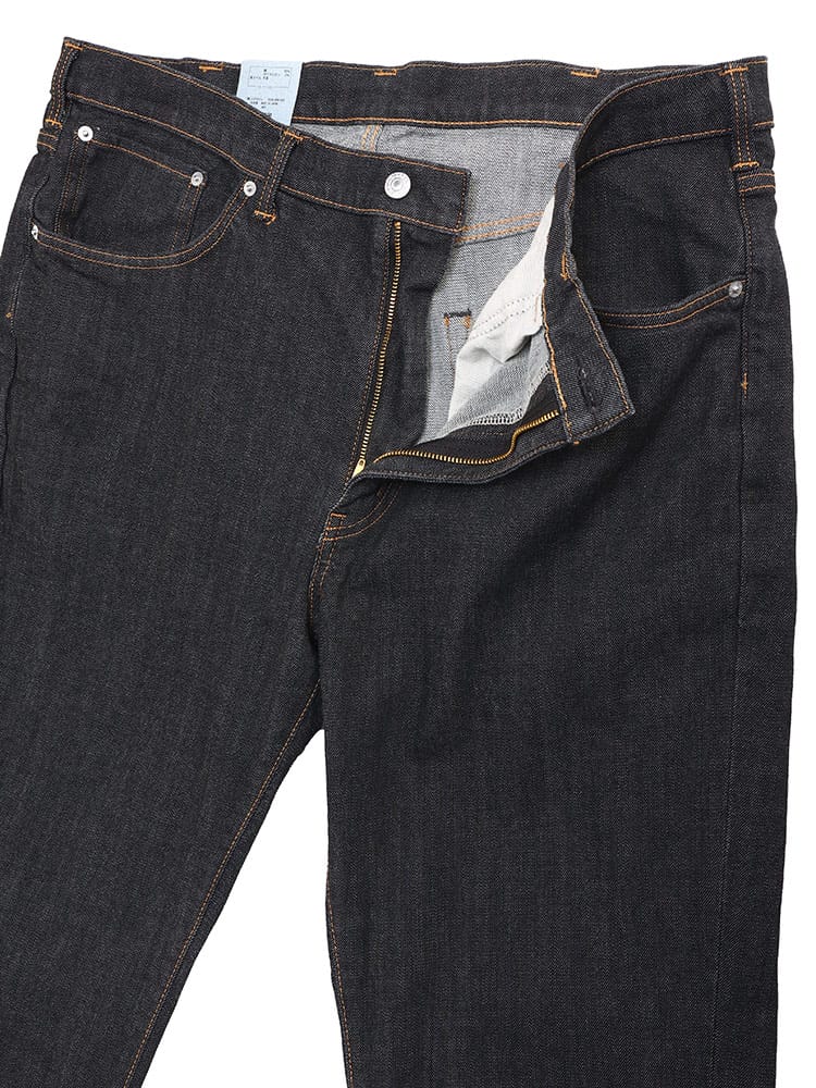 デビューから25年 常に日本人の体型を研究し、キレイに穿ける最高のストレートフィットを追求しました。しっかりとした股上と程よいゆとりを待ちながら、すっきりとしたスタイルが特徴のレギュラーストレートです。プレオゾンとジェット加工の組み合わせによる環境に配慮した新しい洗い加工(特許取得)従来に比べ水の使用量を約95%削減。ボタンリベットなどの金属パーツは製造時の水の使用を75%削減。ネーム&タブは再生ポリエステル100%使用。ポケット布は綿100%CO-RE使用。ファスナーテープは再生ポリエステル100%使用。革ラベルはあえて未塗装。紙附属はデニム再生混抄紙使用。