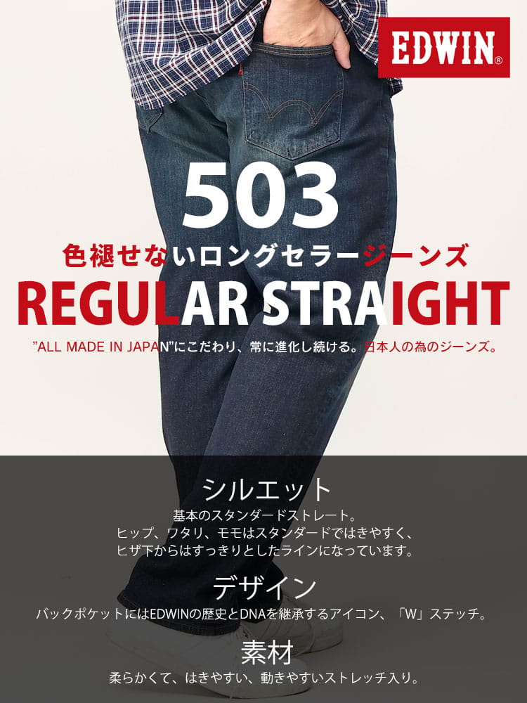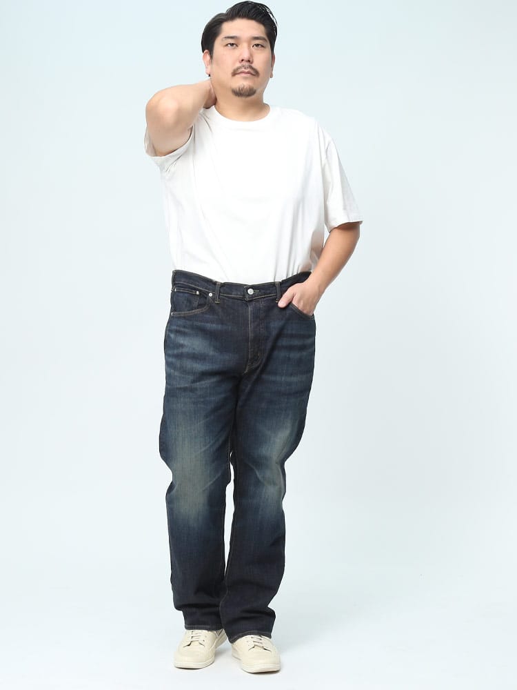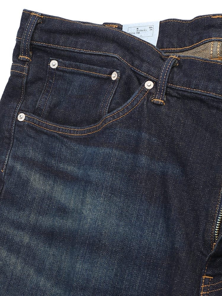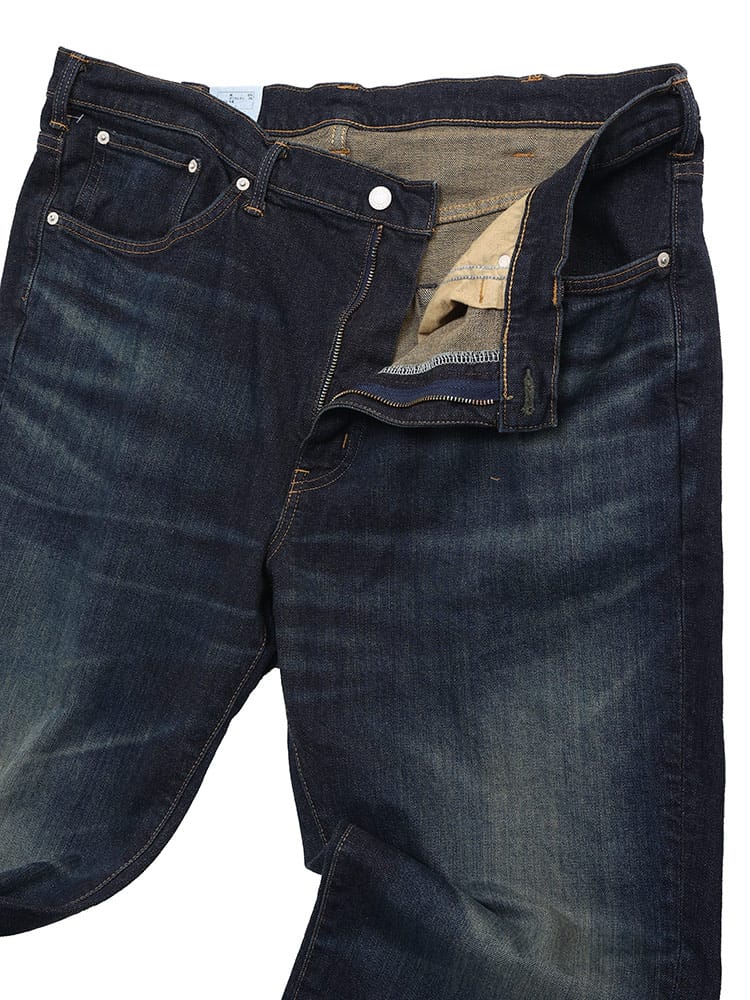デビューから25年 常に日本人の体型を研究し、キレイに穿ける最高のストレートフィットを追求しました。しっかりとした股上と程よいゆとりを待ちながら、すっきりとしたスタイルが特徴のレギュラーストレートです。プレオゾンとジェット加工の組み合わせによる環境に配慮した新しい洗い加工(特許取得)従来に比べ水の使用量を約95%削減。ボタンリベットなどの金属パーツは製造時の水の使用を75%削減。ネーム&タブは再生ポリエステル100%使用。ポケット布は綿100%CO-RE使用。ファスナーテープは再生ポリエステル100%使用。革ラベルはあえて未塗装。紙附属はデニム再生混抄紙使用。