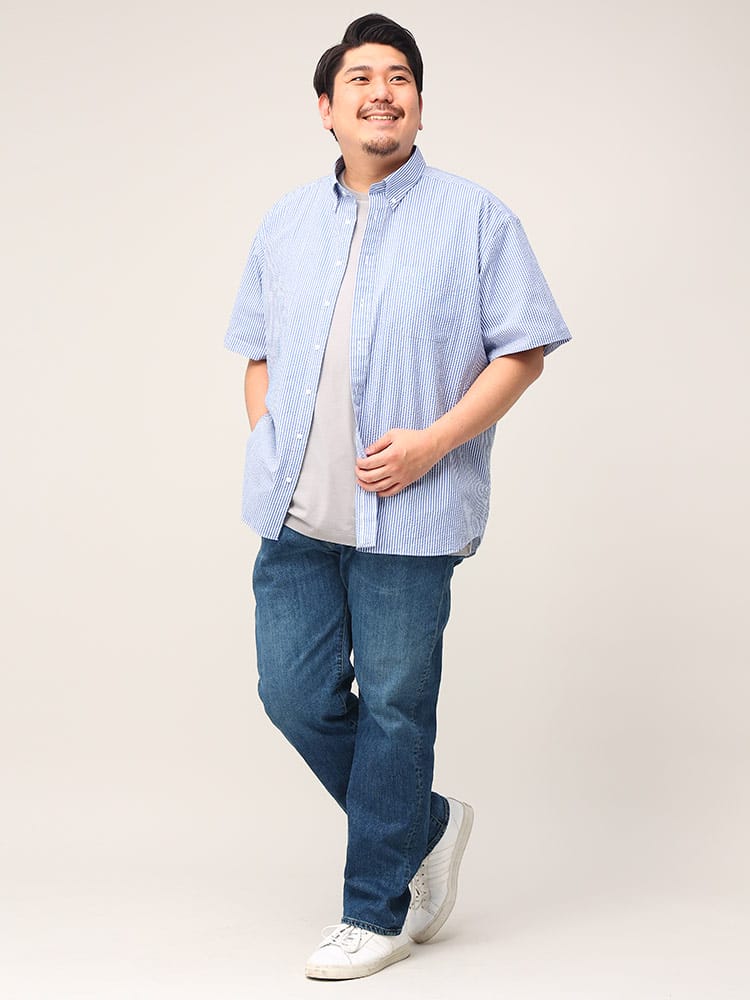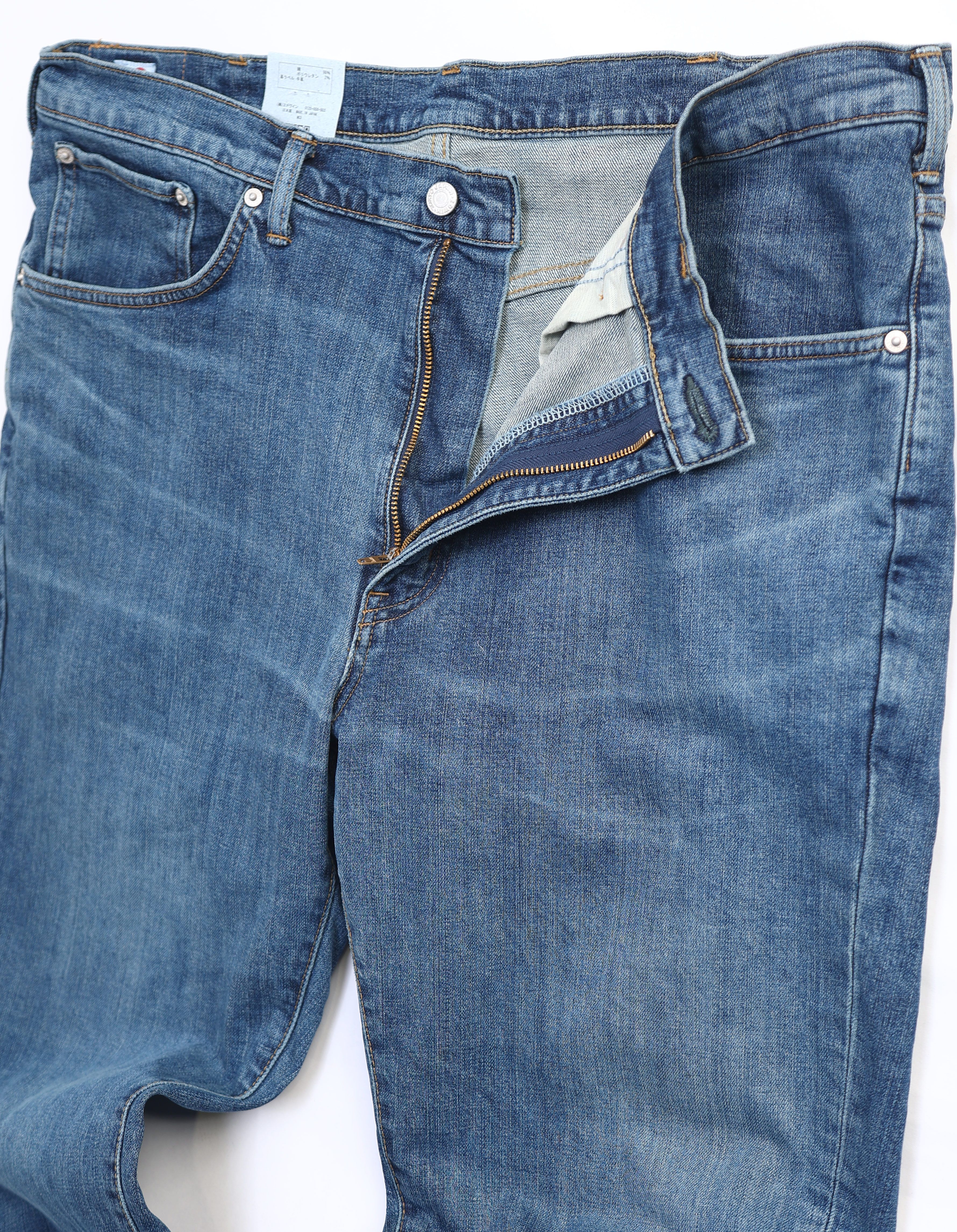 デビューから25年 常に日本人の体型を研究し、キレイに穿ける最高のストレートフィットを追求しました。しっかりとした股上と程よいゆとりを待ちながら、すっきりとしたスタイルが特徴のレギュラーストレートです。プレオゾンとジェット加工の組み合わせによる環境に配慮した新しい洗い加工(特許取得)従来に比べ水の使用量を約95%削減。ボタンリベットなどの金属パーツは製造時の水の使用を75%削減。ネーム&タブは再生ポリエステル100%使用。ポケット布は綿100%CO-RE使用。ファスナーテープは再生ポリエステル100%使用。革ラベルはあえて未塗装。紙附属はデニム再生混抄紙使用。