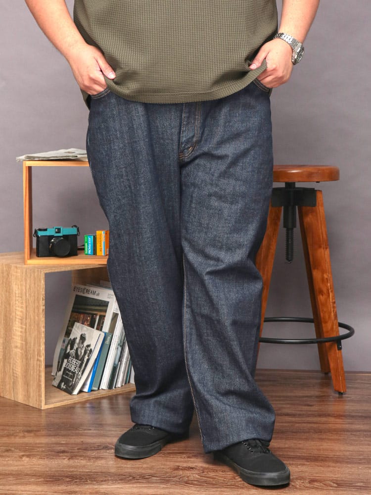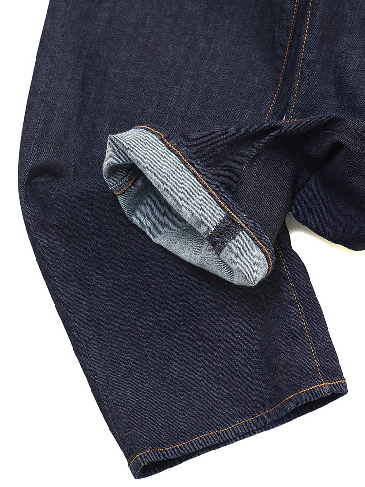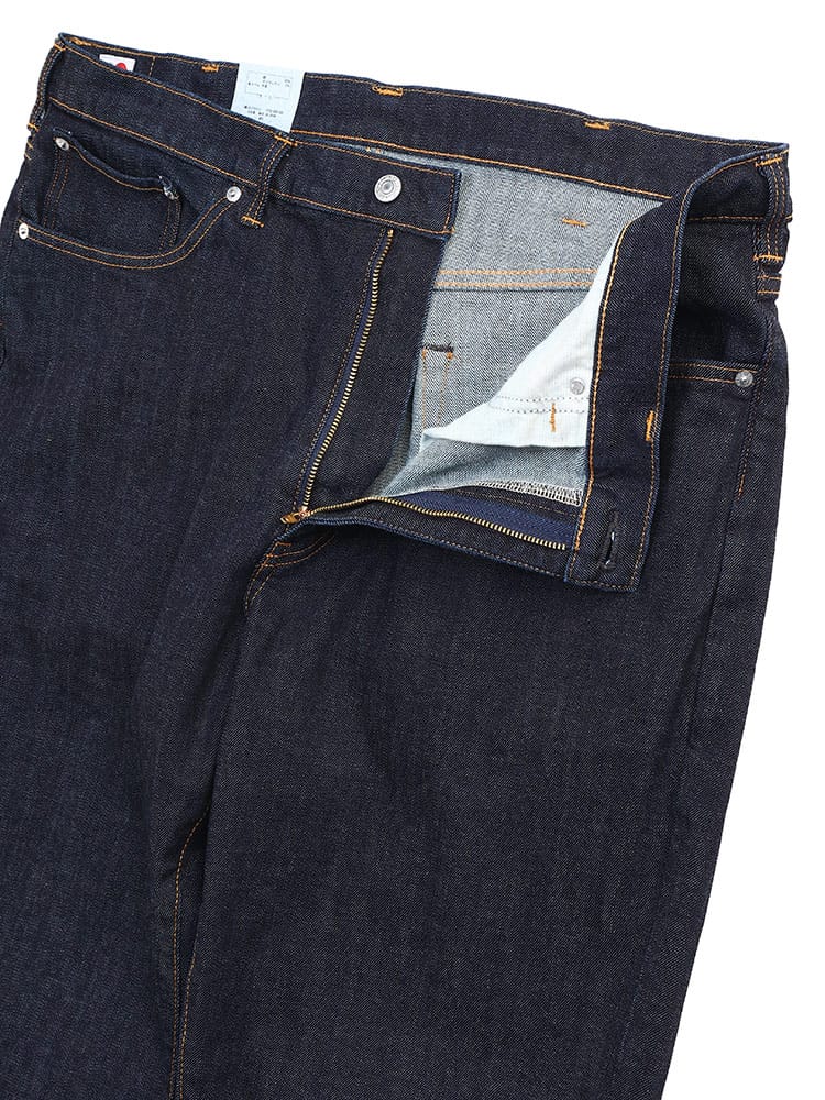 デビューから25年 常に日本人の体型を研究し、キレイに穿ける最高のルーズフィットを追求しました。しっかりとした股上とモモ周りのゆとりを取りながらも、無駄なシワや食込みが無いフィットが特徴です。しっかりとした股上と程よいゆとりを待ちながら、すっきりとしたスタイルが特徴のレギュラーストレートです。プレオゾンとジェット加工の組み合わせによる環境に配慮した新しい洗い加工(特許取得)従来に比べ水の使用量を約95%削減。ボタンリベットなどの金属パーツは製造時の水の使用を75%削減。ネーム&タブは再生ポリエステル100%使用。ポケット布は綿100%CO-RE使用。ファスナーテープは再生ポリエステル100%使用。革ラベルはあえて未塗装。紙附属はデニム再生混抄紙使用。