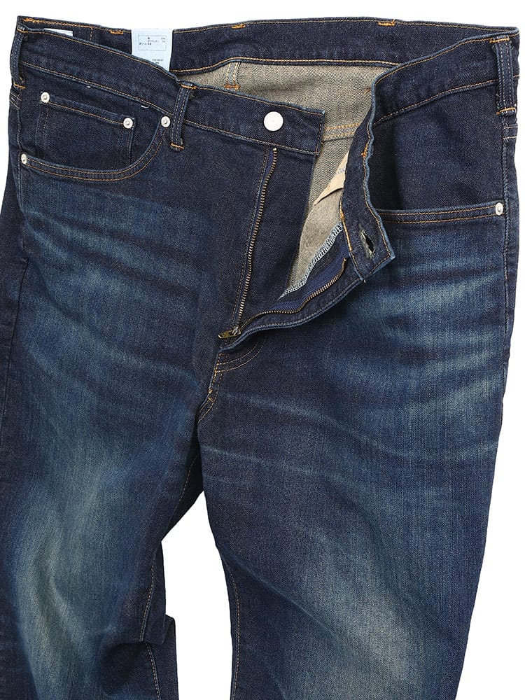 デビューから25年 常に日本人の体型を研究し、キレイに穿ける最高のルーズフィットを追求しました。しっかりとした股上とモモ周りのゆとりを取りながらも、無駄なシワや食込みが無いフィットが特徴です。しっかりとした股上と程よいゆとりを待ちながら、すっきりとしたスタイルが特徴のレギュラーストレートです。プレオゾンとジェット加工の組み合わせによる環境に配慮した新しい洗い加工(特許取得)従来に比べ水の使用量を約95%削減。ボタンリベットなどの金属パーツは製造時の水の使用を75%削減。ネーム&タブは再生ポリエステル100%使用。ポケット布は綿100%CO-RE使用。ファスナーテープは再生ポリエステル100%使用。革ラベルはあえて未塗装。紙附属はデニム再生混抄紙使用。