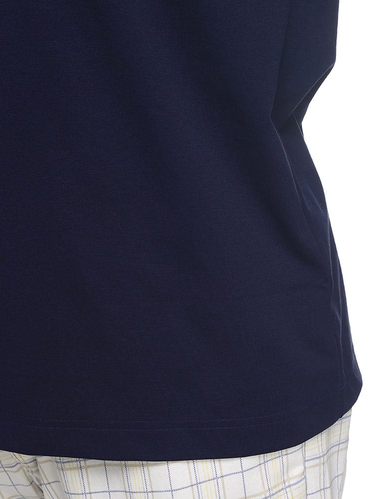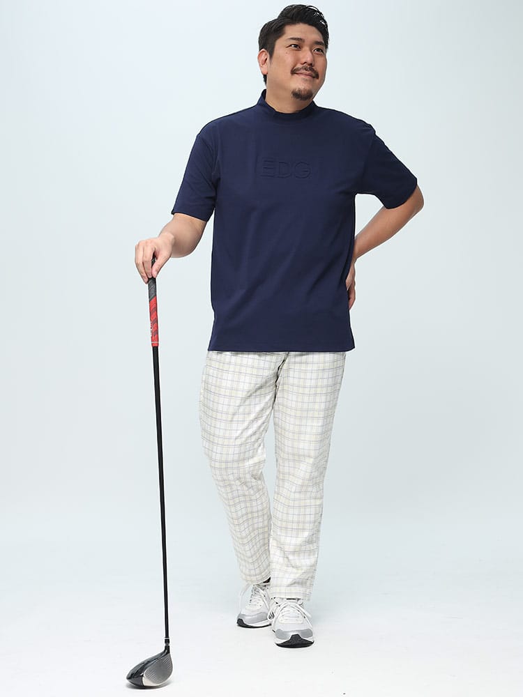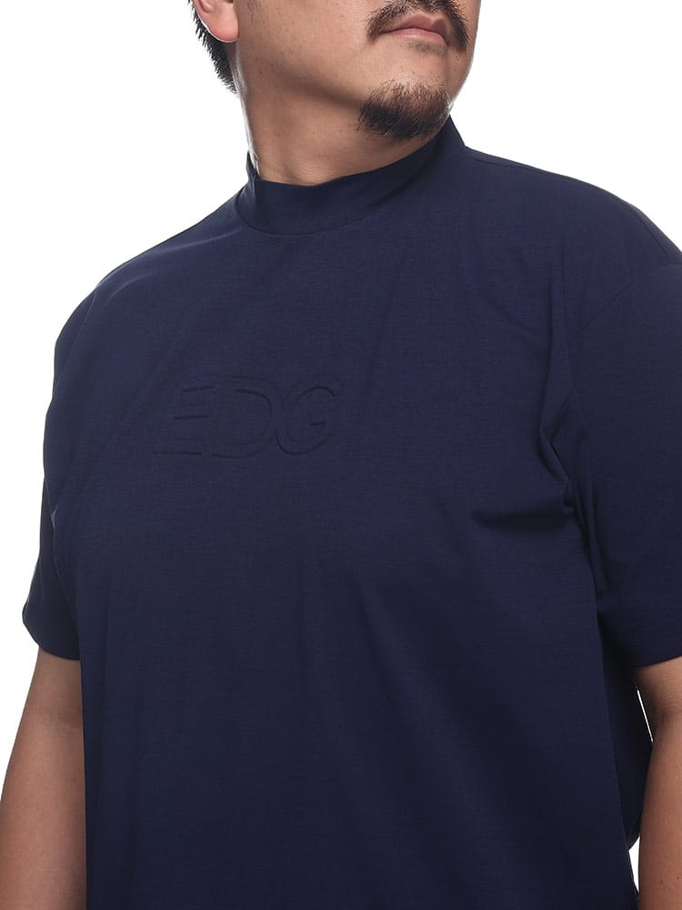 EDWIN GOLFのEDG半袖モックネックTシャツは、ゴルフに適したデザインと機能性を備えたアイテムです。このTシャツは、ネイビーカラーで、ポリエステル素材を使用しています。さらに、ストレッチ性も備えているため、自由な動きやスイングを妨げずにプレーすることができます。
