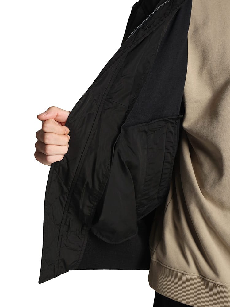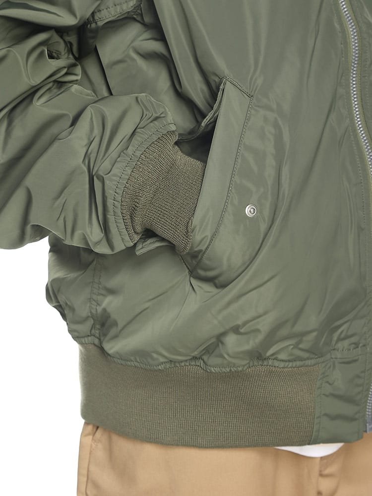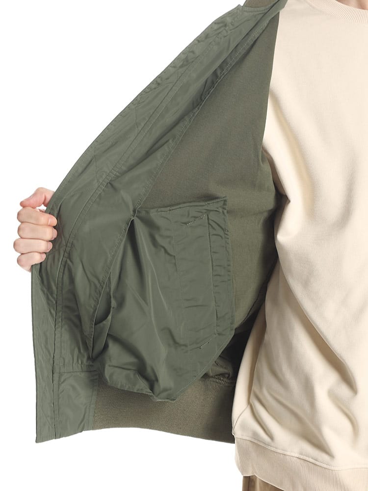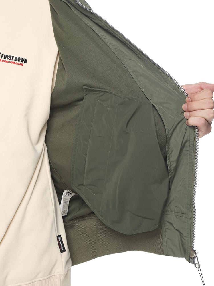 ミリタリー由来の無骨なデザインがタフさを演出。人気のボンディングシリーズがUSスペックシルエットにアップデート!オールシーズン対応のライトアウターで、どんなスタイルにも合わせていただける使い勝手のいいデザインが魅力のL-2Bジャケット。フロントの裏当てに施されたワンポイント刺繍と袖のALPHAタグがさりげないアクセントになっています。表地には軽量ポリエステルタフタを使用し、ライニングには肌さわりのいいカットソー素材が使われているため、中に半袖Tシャツを合わせていただく季節にもオススメの一着です。