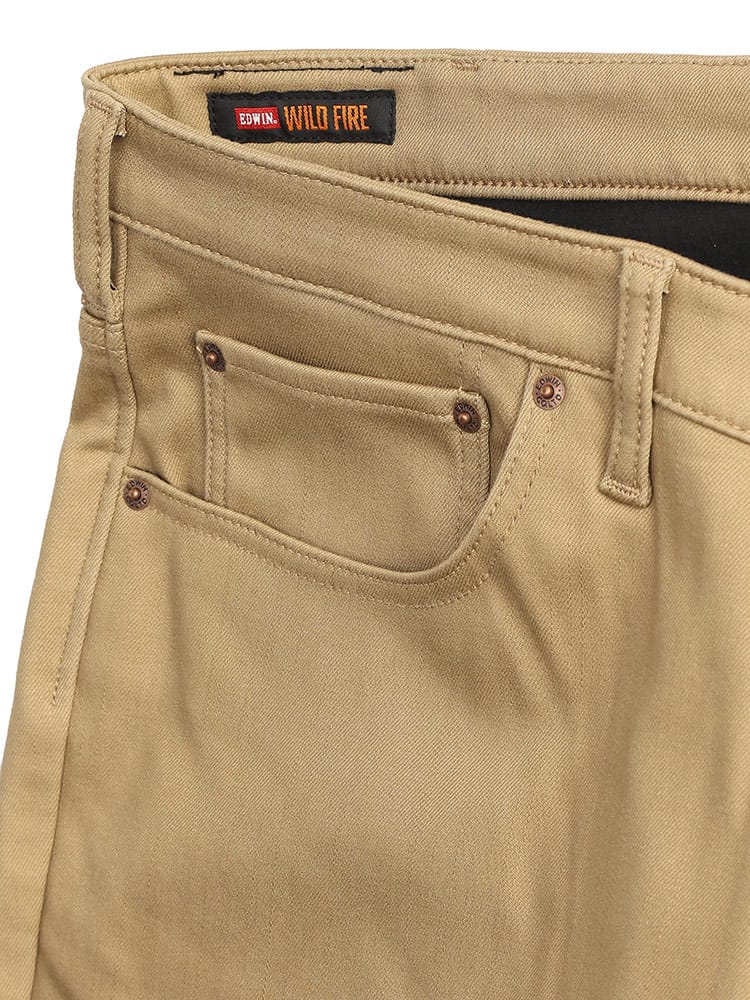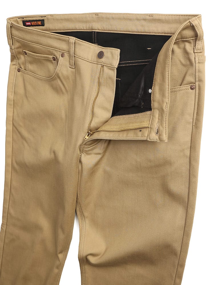 インターナショナルベーシック403 WILDFIRE【2層構造】デニムパンツなのに暖かい!ストレッチ感のある素材は非常にラクで快適な穿き心地です。2層ボンディング構造生地はごわごわせず、裏面にマイクロフリースを貼り合わせており肌に当たる面は暖かい。裏面のマイクロフリースの空気の層により、保温効果を高めています。寒い朝パンツに足を通す際に、いやな『ヒヤッと』感がなく、暖かい状態でおでかけすることができます!定番のINTERNATIONAL BASIC 403と同様、ゆったりとした腰回りで穿く人を選びません。普段着用のジーンズと変わりない穿きこなしができるのに、冬の寒さから完全に守ってくれる安心な1枚です。