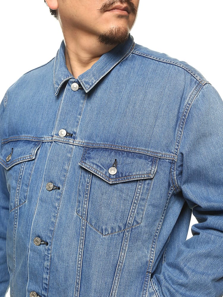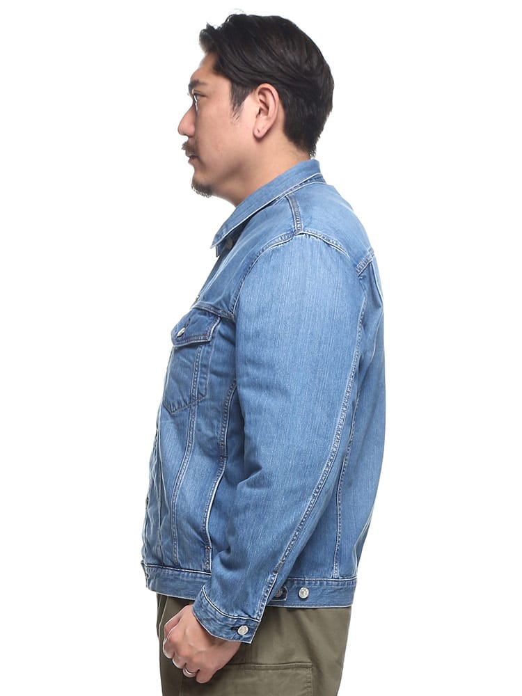一枚は持っておきたいスタンダードなデニムジャケット。デニムにはミドルオンスの綿100%ブルーデニムを使用。タテ糸にナチュラルなムラ糸を使用したデニムらしい表情が特徴の素材。カラーにはミドルオンスの綿100%ツイルを使用。スタンダードなボックスシルエットで、アメカジスタイルはもちろん、キレイめなコーディネートのアクセントとしても使える一枚。長く使えるベーシックアイテムならではの、こだわりの作りの1着になっています。
