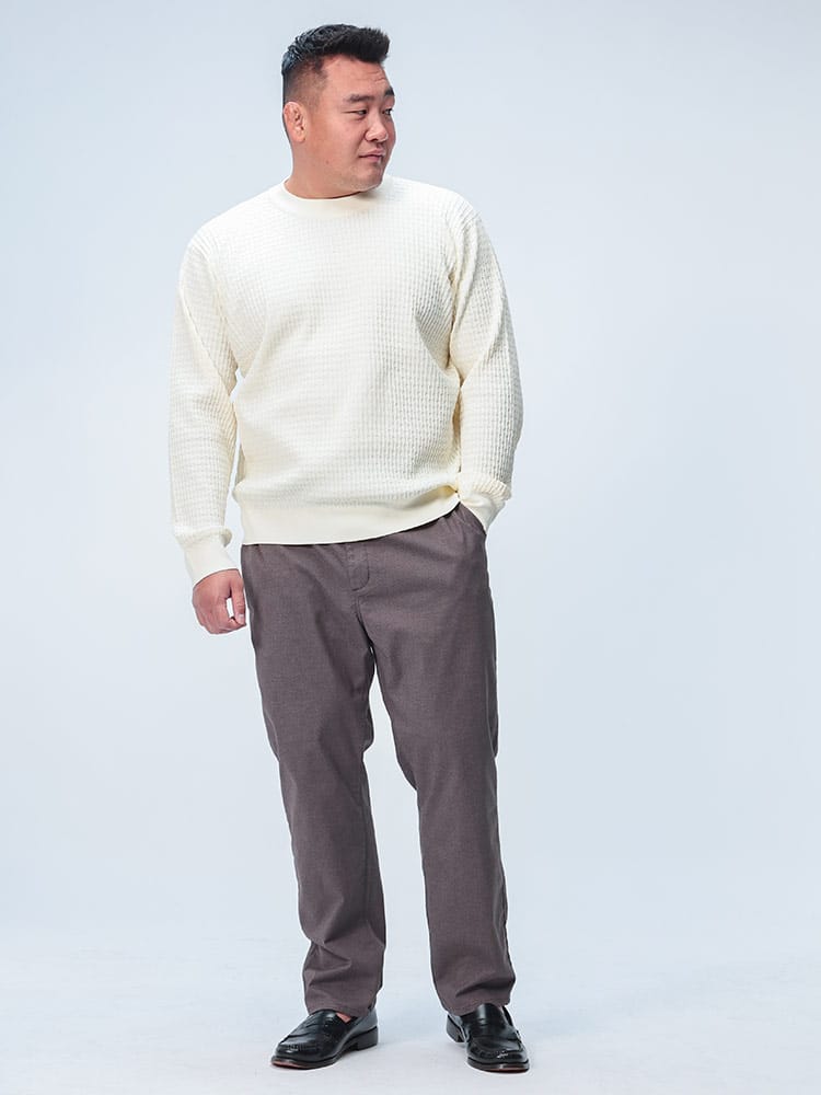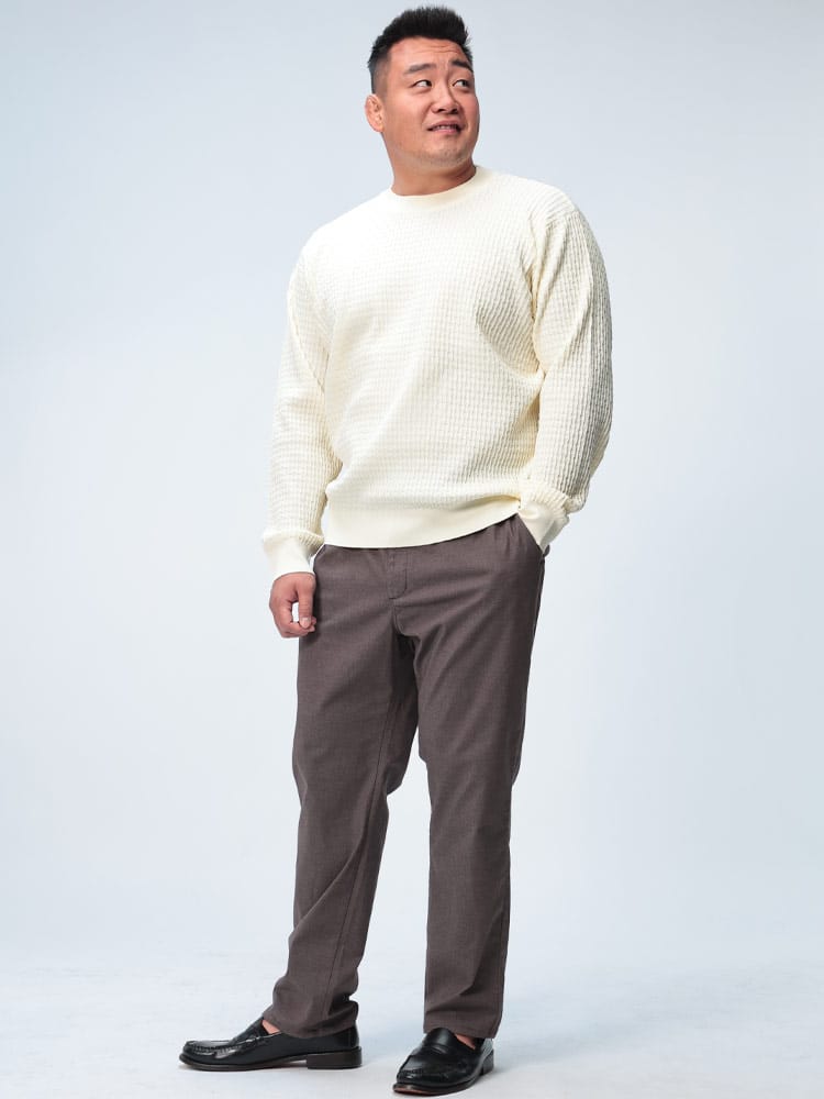 凹凸のある生地が空気層を作ることで、暖かさをキープしつつも、蒸れにくい快適な着心地です。
