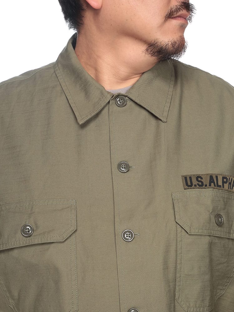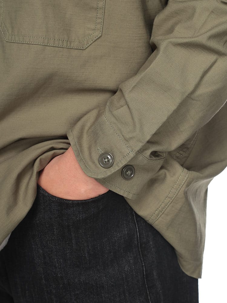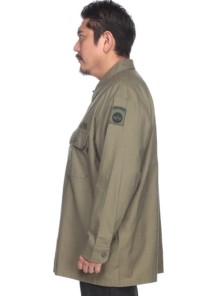 バックデザインが特徴的な長袖シャツです。背面に刺繍が施され、ミリタリーテイストのデザインが印象的。フロントにはユーティリティポケットがあり、機能性とスタイルを両立しています。丈夫な素材で仕立てられ、アクティブなシーンにも対応。カジュアルからアウトドアまで幅広いスタイルで活躍する、実用性の高いシャツです。