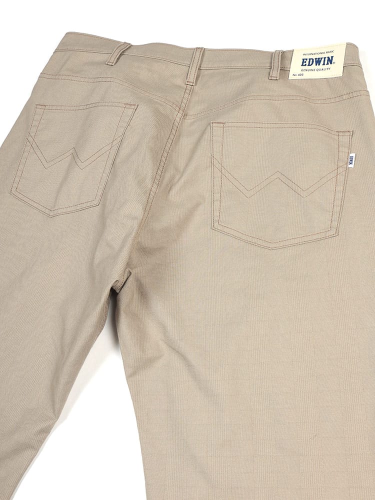 EDWINの403 COOL FLEX 麻混 ストレッチ ジップフライ ストレート ジーンズは、麻混素材とストレッチ性で夏でも涼しく快適な穿き心地の、大きいサイズのメンズにおすすめのベーシックなストレートジーンズです。