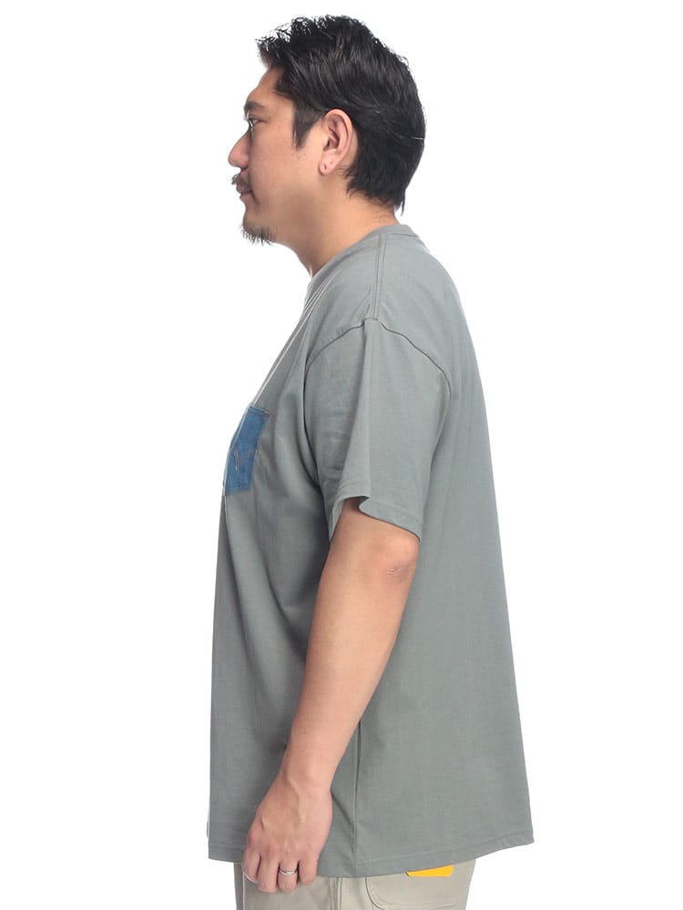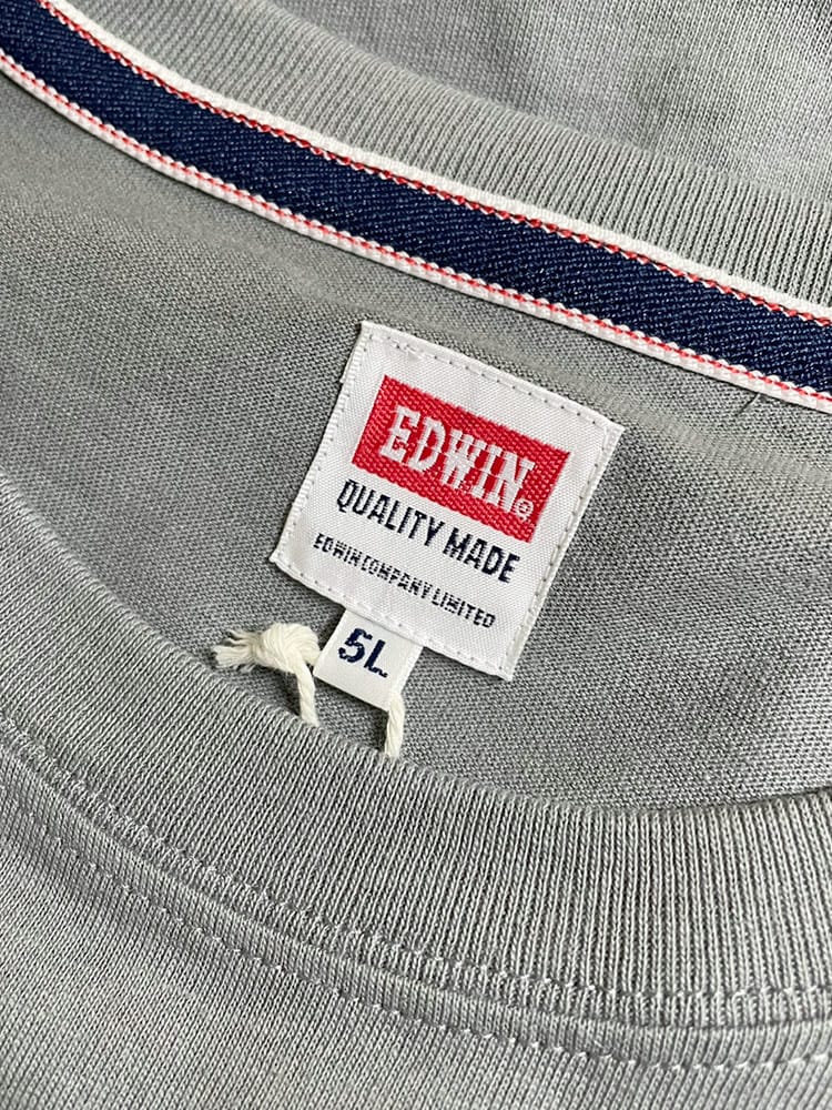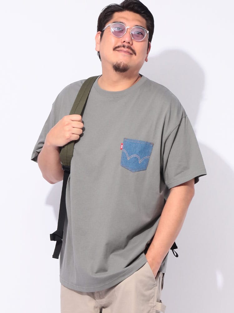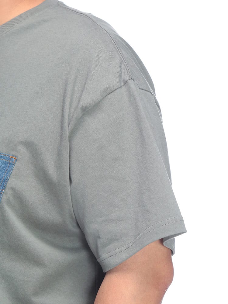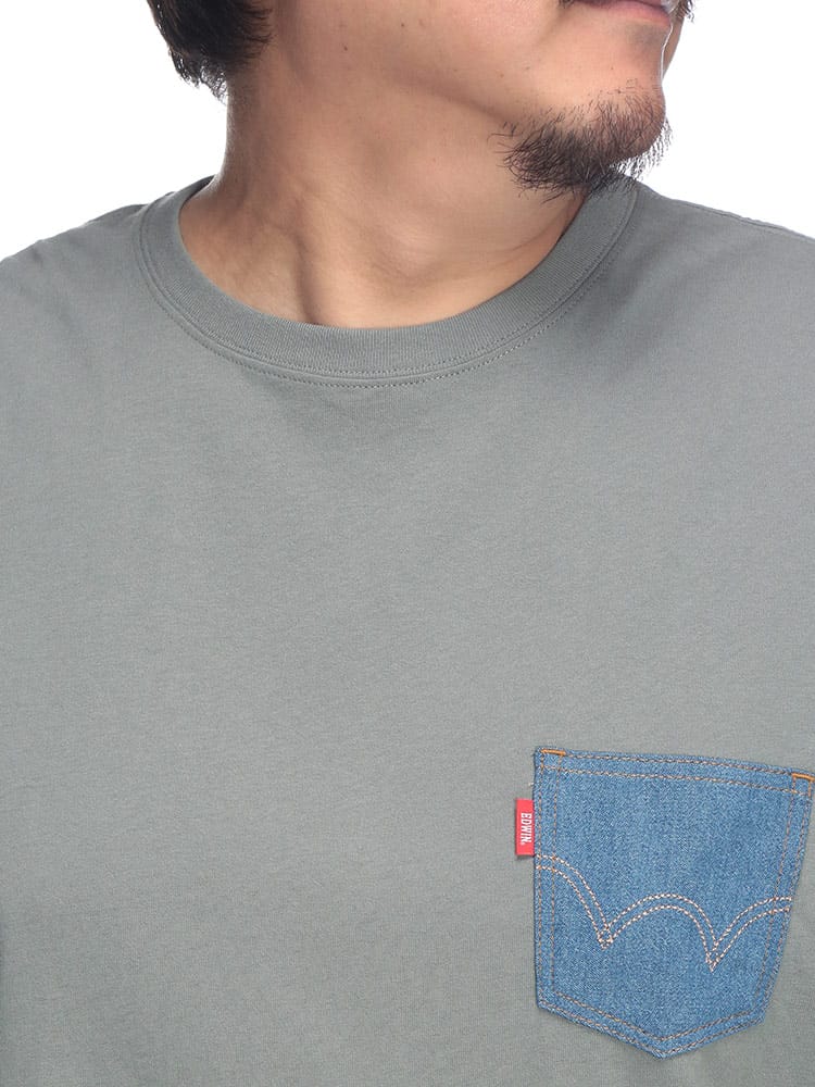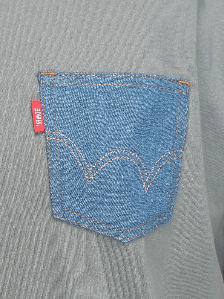 EDWINの新作、ダークグレーのデニムポケット付きクルーネック半袖Tシャツ。大きいサイズで、こなれたオーバーサイズ感を演出。柔らかなコットン100%素材で、快適な着心地が続きます。胸元のデニムポケットが、さりげないアクセントに。シンプルながらも、大人のカジュアルスタイルに深みを加える一枚。外側ポケットが一つ付いており、機能性も◎。デイリーユースに活躍すること間違いなしです。