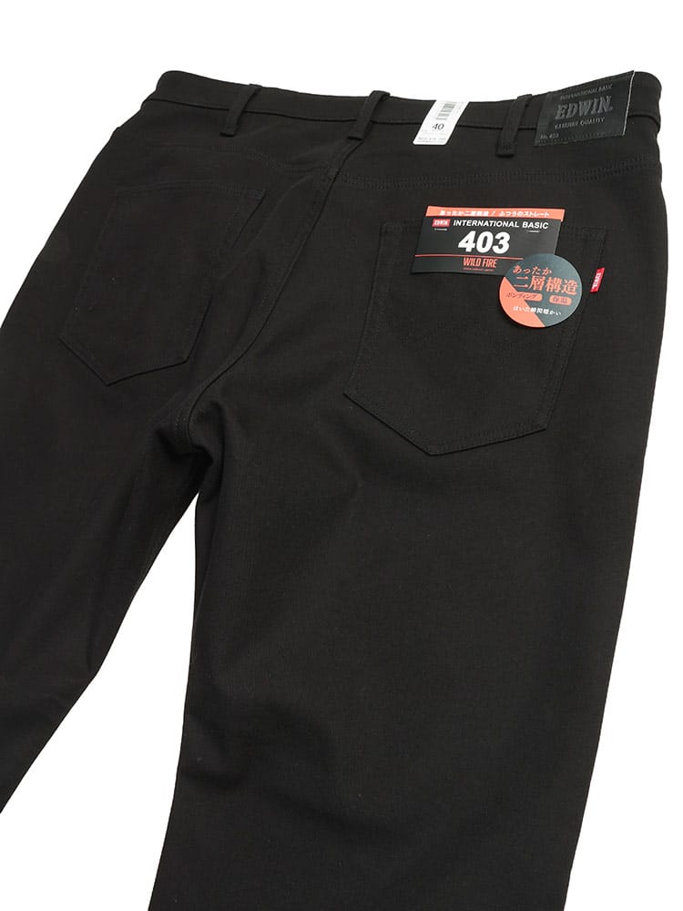 EDWINの403 WILD FIREは、「はいた瞬間暖かい」をコンセプトにした防寒ジーンズです。特殊な二層構造素材を採用しており、冷たい外気を遮断しつつ、肌に触れる内側は温もりを感じさせます。シルエットは穿きやすい定番のレギュラーストレート。寒さが厳しい季節でも、ファッション性と快適な暖かさを両立できる、冬の必須アイテムです。