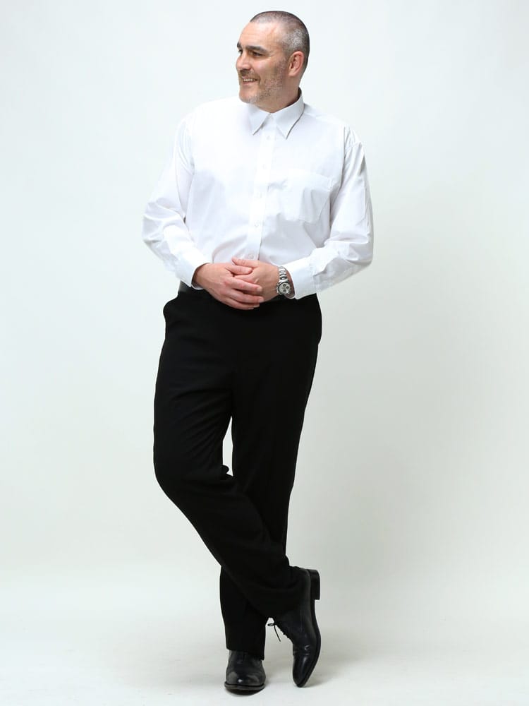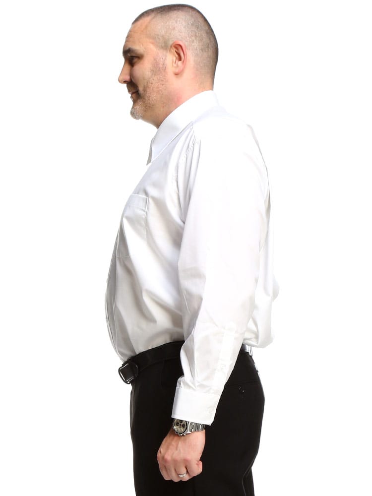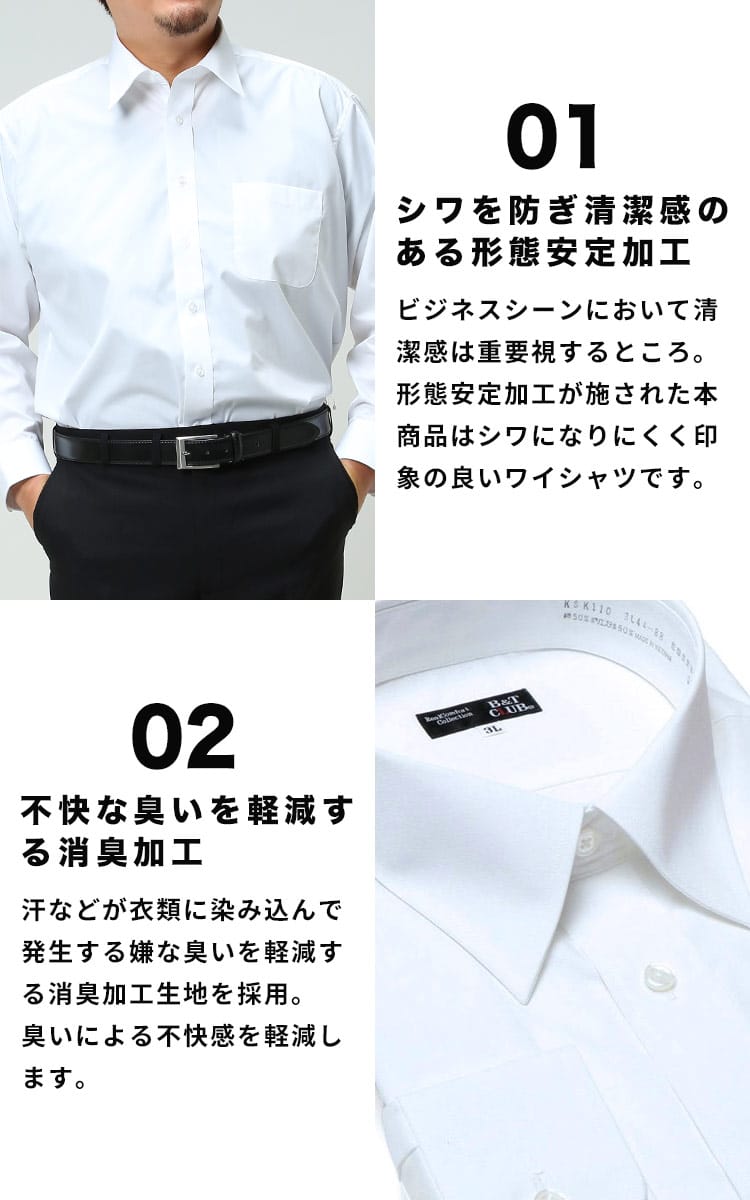 サカゼンオリジナルのレギュラーカラードレスシャツです。型崩れ、シワになりにくい形態安定加工や消臭加工が施されており、清潔・快適に着用できるホワイト無地の定番ビジネスシャツです。