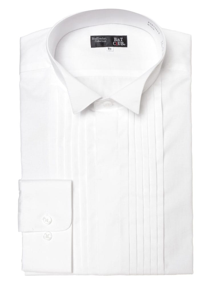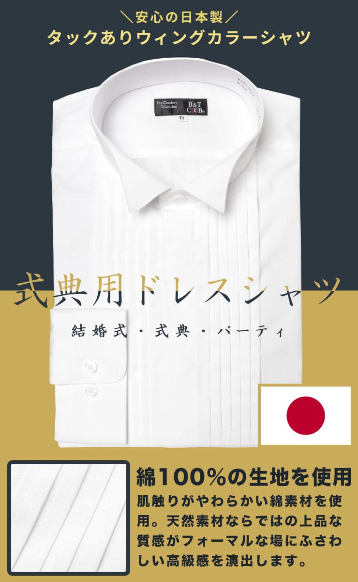 サカゼンオリジナル ウイングカラー 長袖 ワイシャツ(ピンタックあり)です。パーティーなどフォーマルなお席にふさわしい上品な華やかさのあるドレスシャツです。ピンタック(縫いひだ)付きでクロスタイ・蝶ネクタイにピッタリのシャツです。