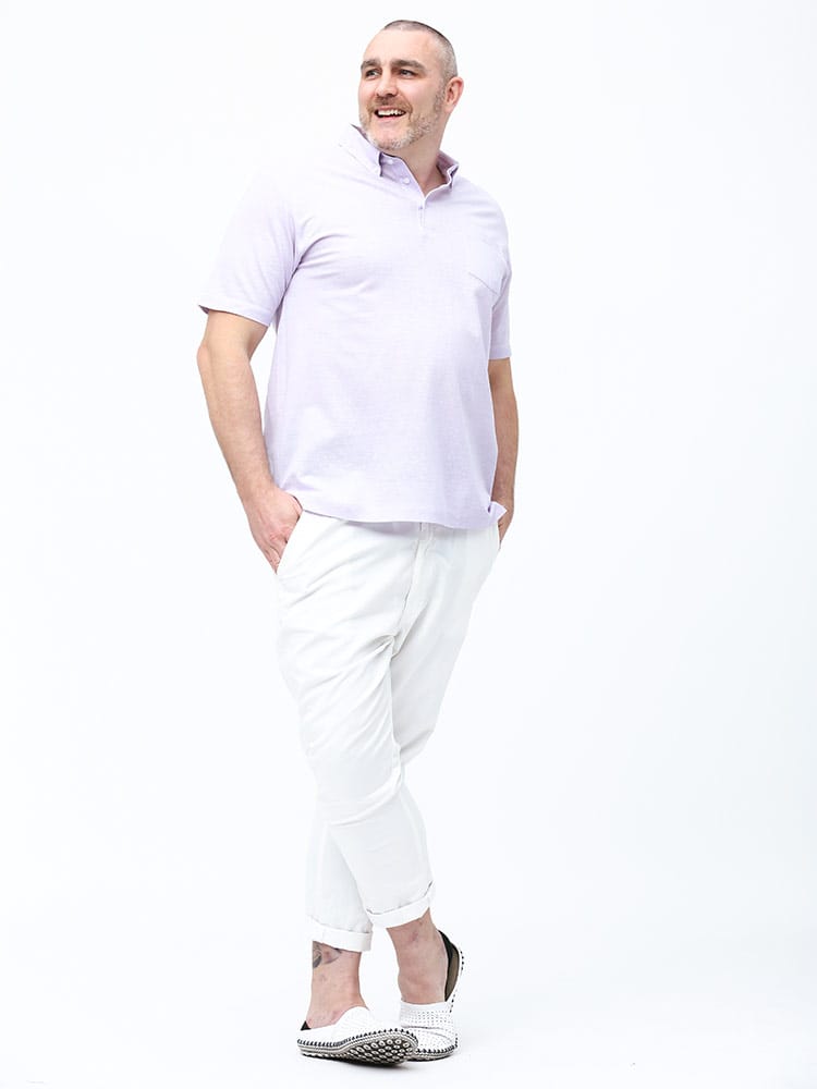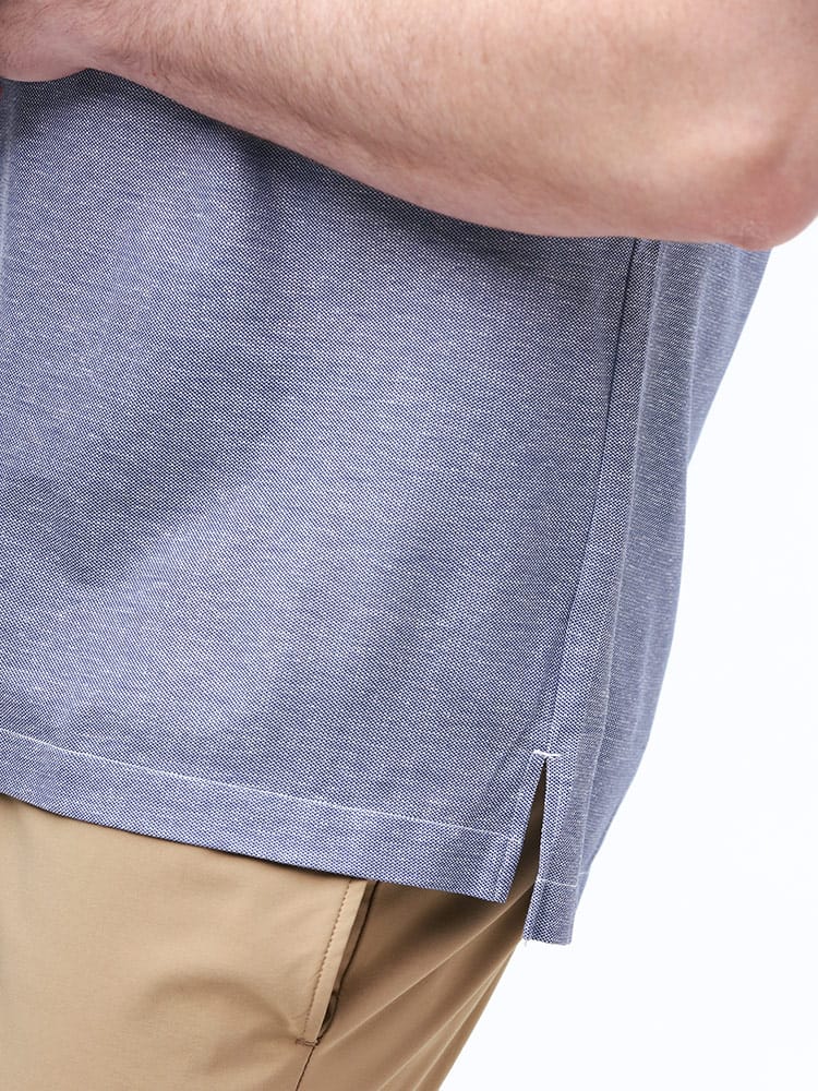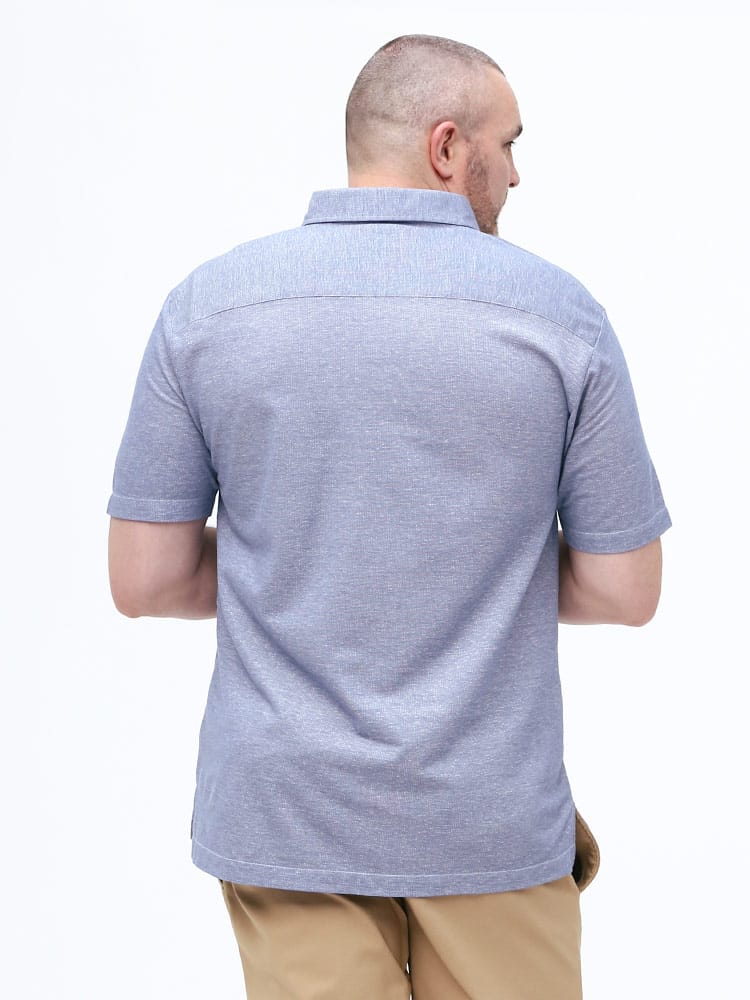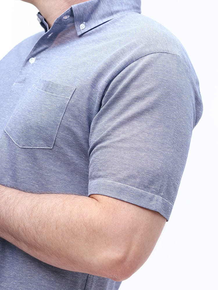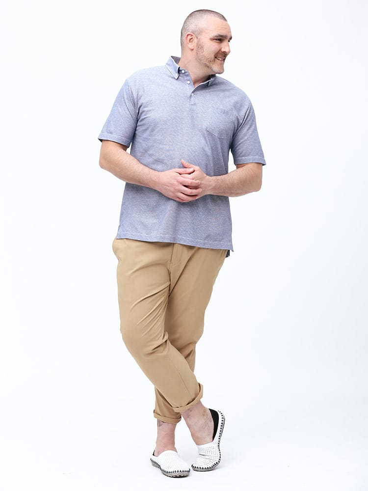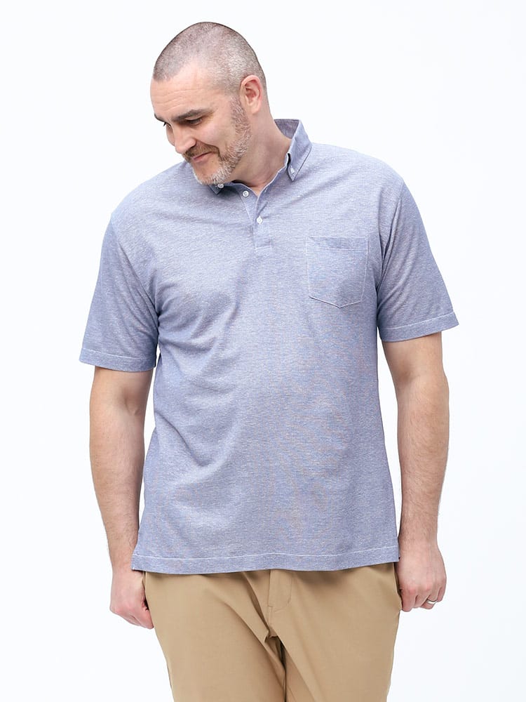 コットンとリネンを組み合わせたボタンダウン半袖ポロシャツ。透け感があり通気性抜群な生地感。汗をかいても爽やかな着心地をキープできるのでストレスを軽減してくれます。胸にポケット付き。再度スリット入りでアクセントプラス。カジュアルでもビジネスにも使い回せるオススメなアイテムです。