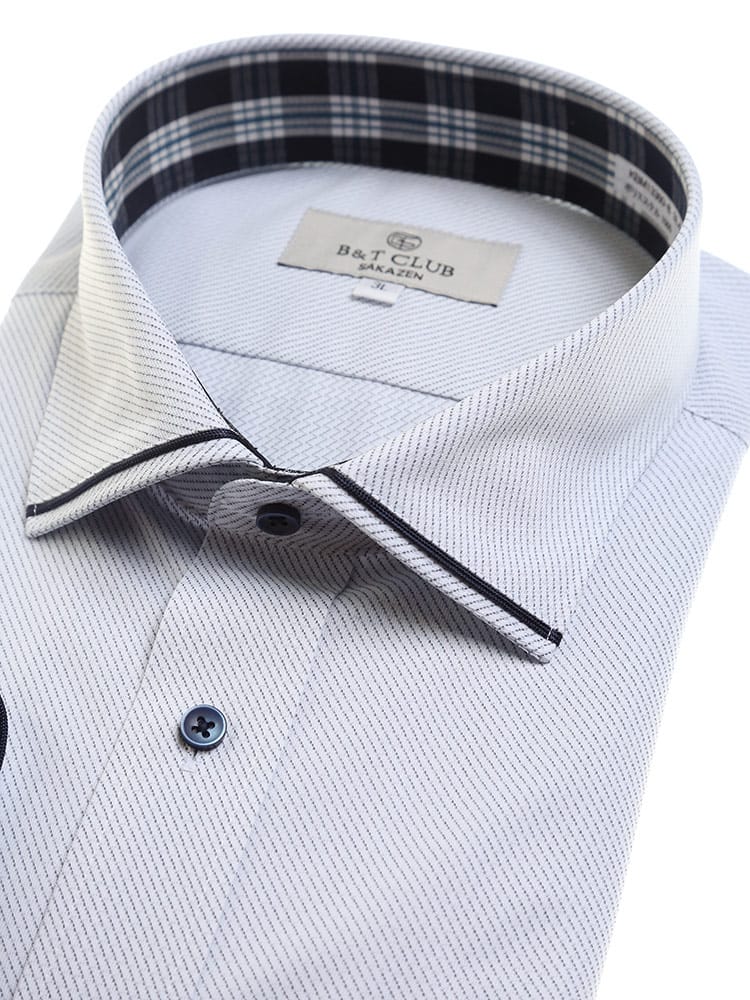 肌触りの良い着心地の形態安定 袖裏デザイン ワイドカラー ニット 長袖 シャツ RELAX BODYです。ベーシックなルックスで、ビジネスシーンにはもちろんきれいめなスタイルにも合わせていただけます。袖裏デザインがポイント。毎日着るビジネスマンやアイロン嫌いの方にはおすすめの形態安定加工なので綺麗なフォルムを保ったまま着用することができます。