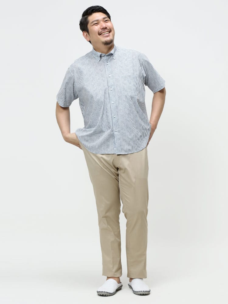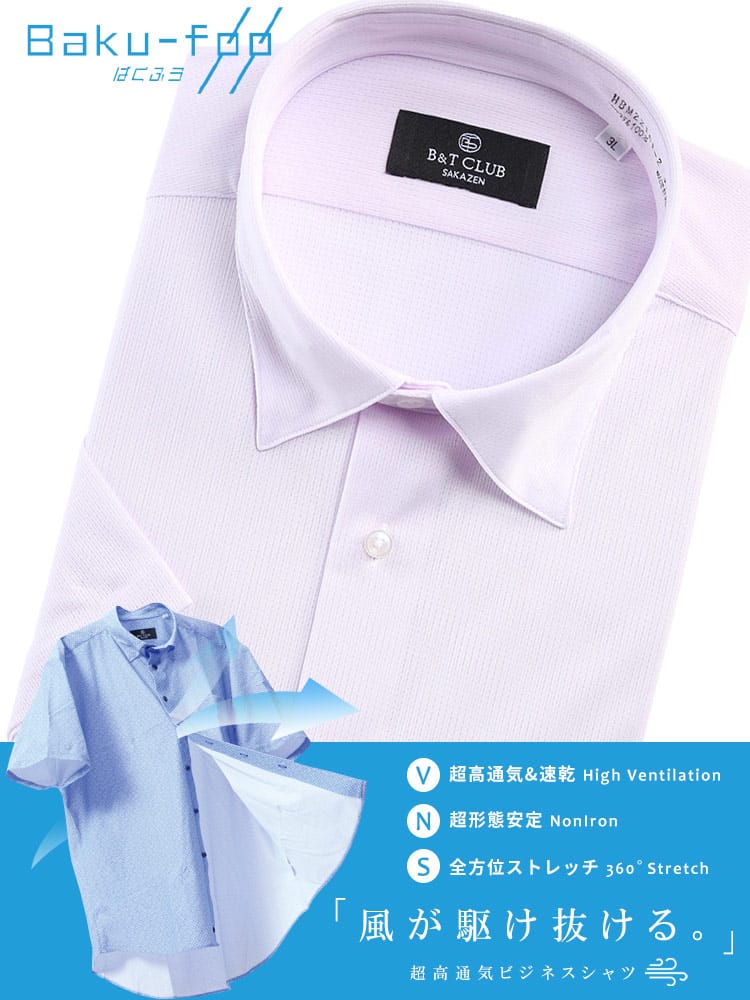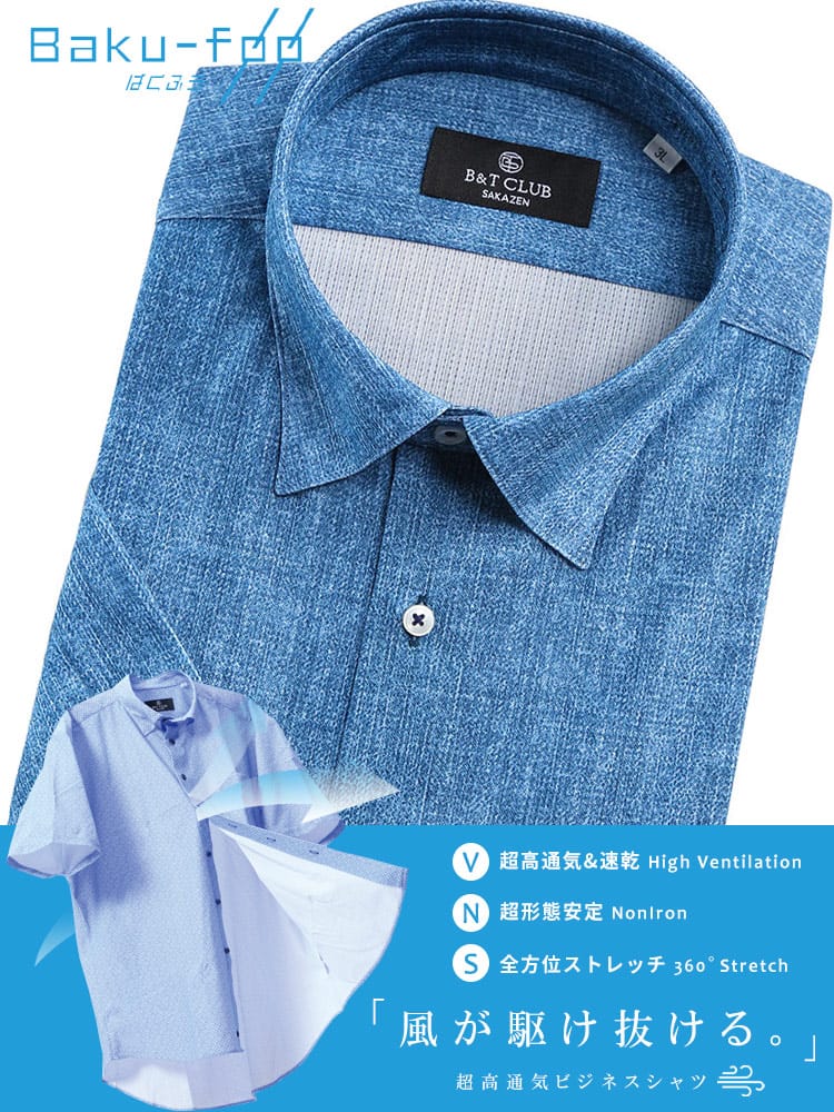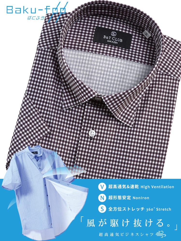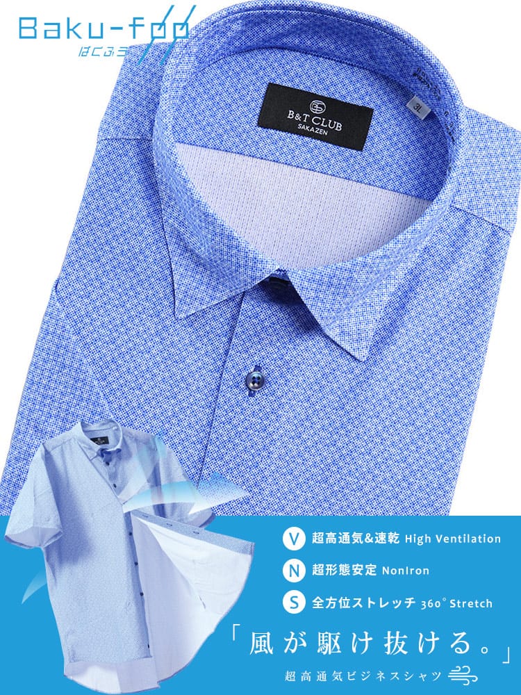 快適機能のBaku-Foo(ばくふう)を搭載した形態安定 ストレッチ スナップダウン 半袖 ワイシャツ SLIMBODYです。高通気性、ノンアイロン、360度ストレッチでお手入れがラクラクで快適な着心地が魅力です。首元はスナップボタンでスッキリとした印象のアイテム。きれいなシルエットのSLIMBODY。