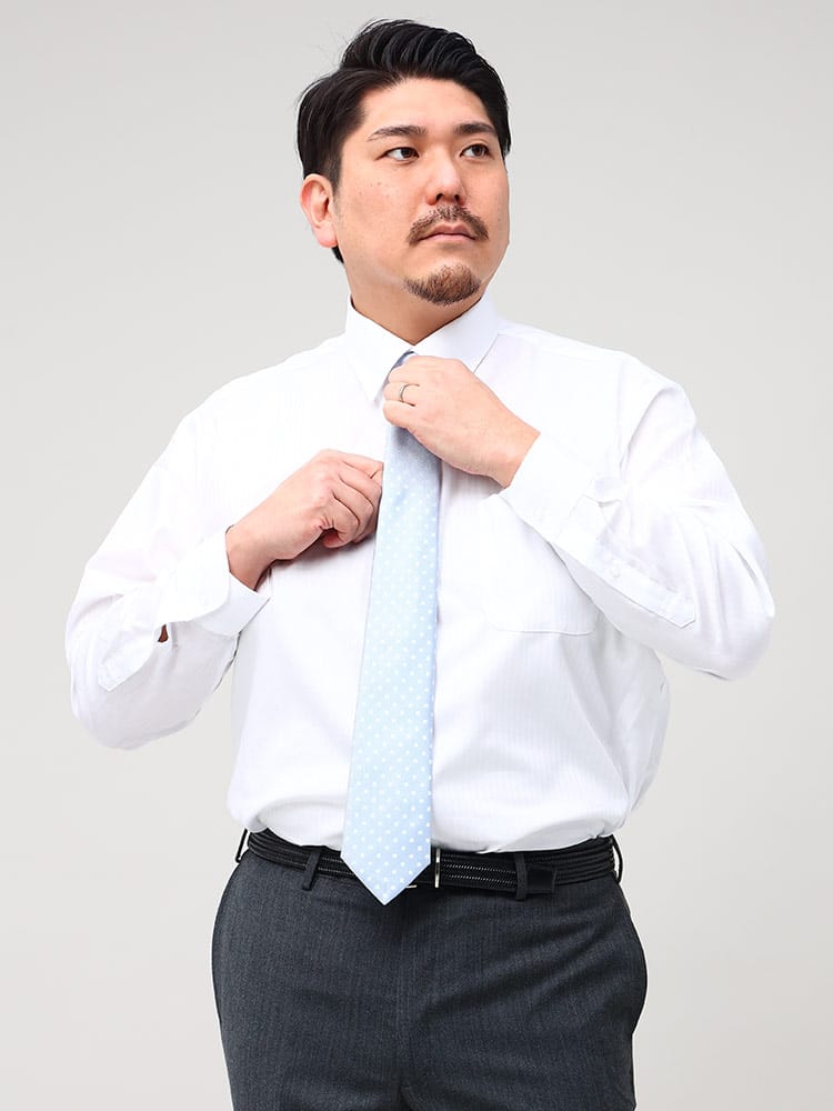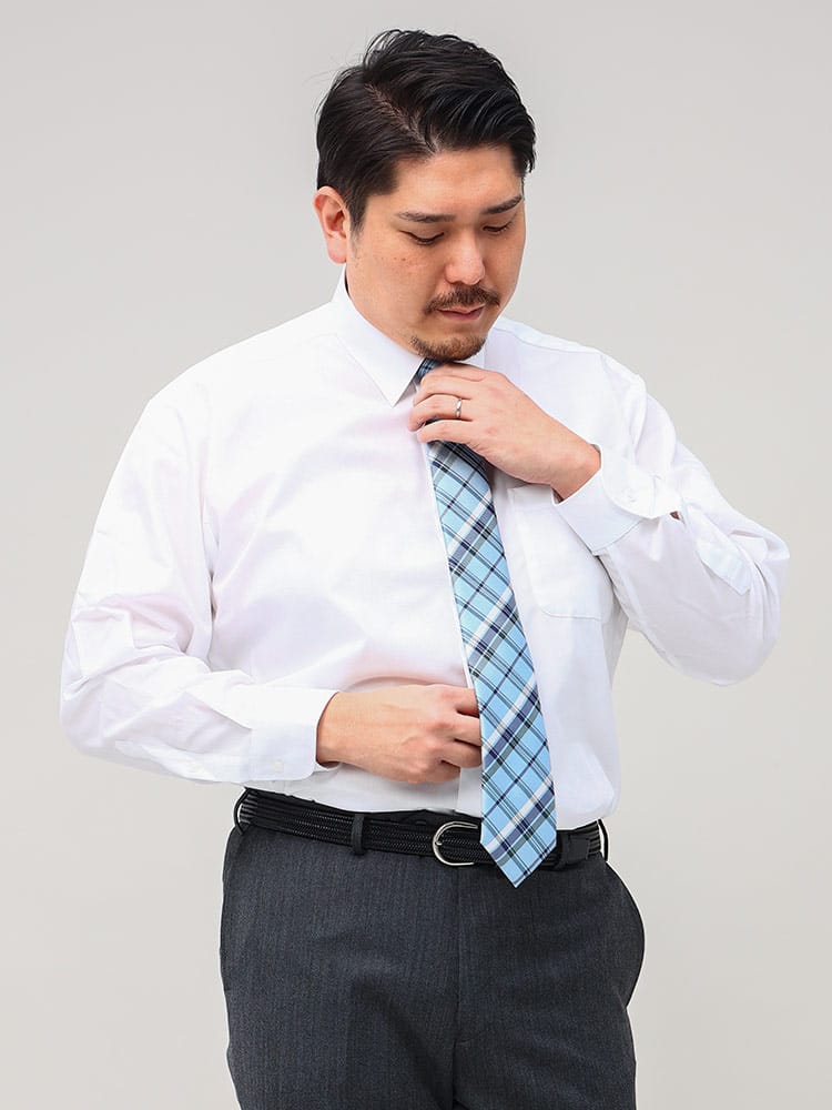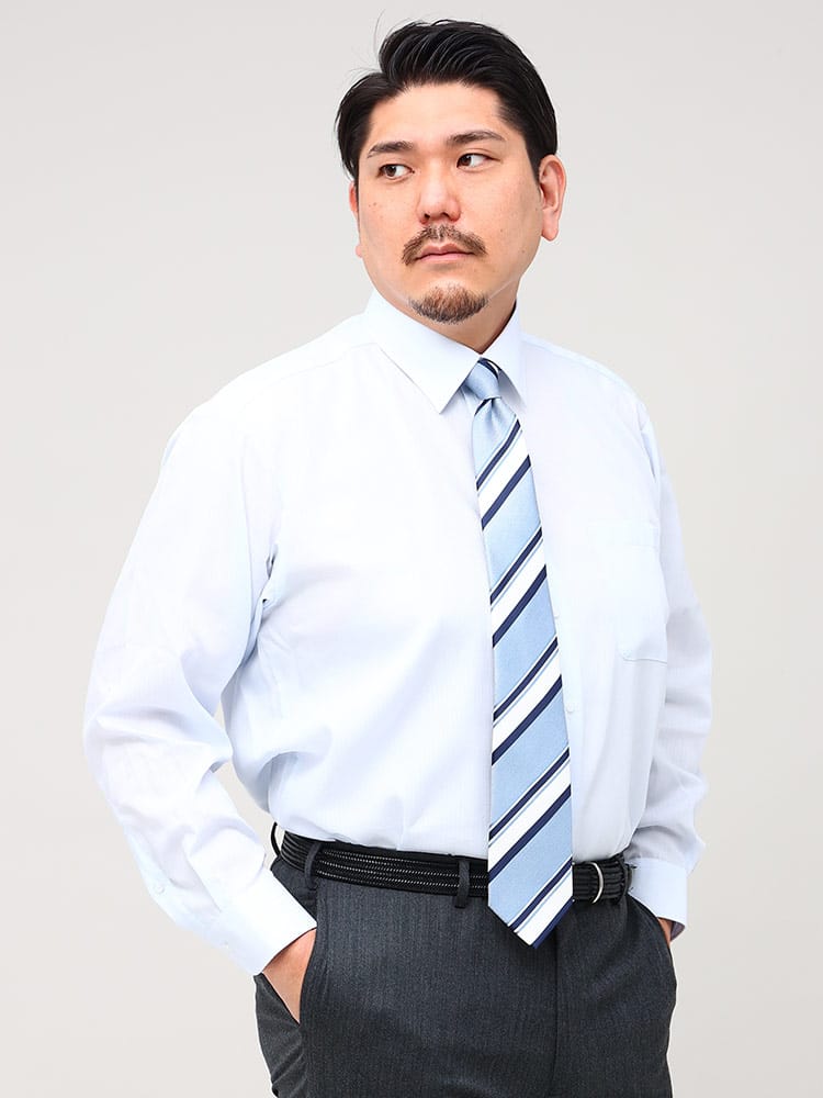 アイロンをかけなくても着用できる形態安定のワイドカラー長袖ワイシャツです。ベーシックなルックスで、ビジネスシーンにはもちろんきれいめなスタイルにも合わせていただけます。毎日着るビジネスマンやアイロン嫌いの方にはおすすめの形態安定加工なので綺麗なフォルムを保ったまま着用することができます。ビジネスにはもちろん、パーティーなどの華やかなオケージョンにもお使いいただけます。ゆったり着れるRELAX BODYに加え、綿100%で肌ざわりもなめらか。