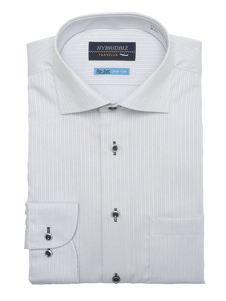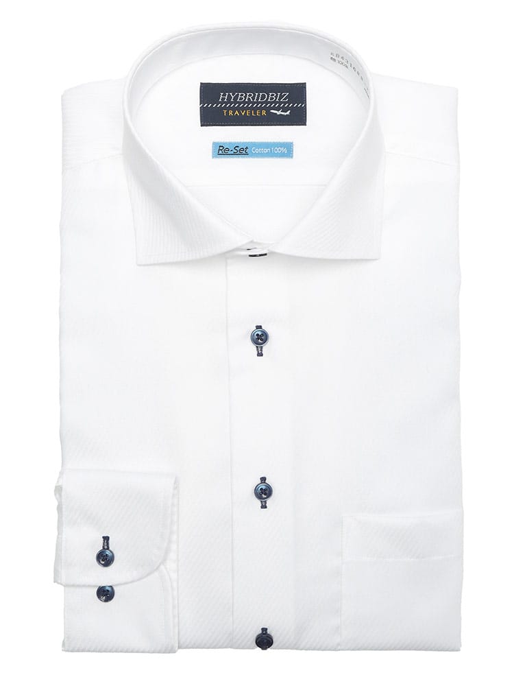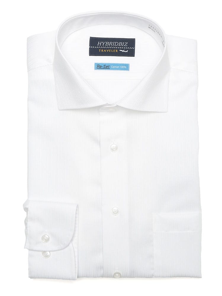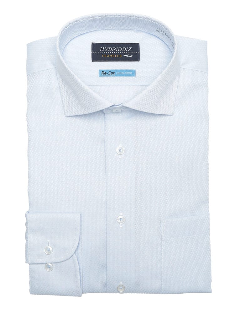HYBRIDBIZのRe-Set機能搭載ワイシャツは、忙しい朝の味方。綿100%の自然な風合いと、形態安定加工による美しいシルエットを両立しました。セミワイドカラーのすっきりとしたデザインは、ビジネスシーンはもちろん、カジュアルなスタイルにも合わせやすく、幅広いコーディネートが楽しめます。アイロンがけの手間を省き、いつでも清潔な印象を保てるのも嬉しいポイント。BASIC BODYの快適な着心地は、一日中アクティブに過ごしたい方にもおすすめです。