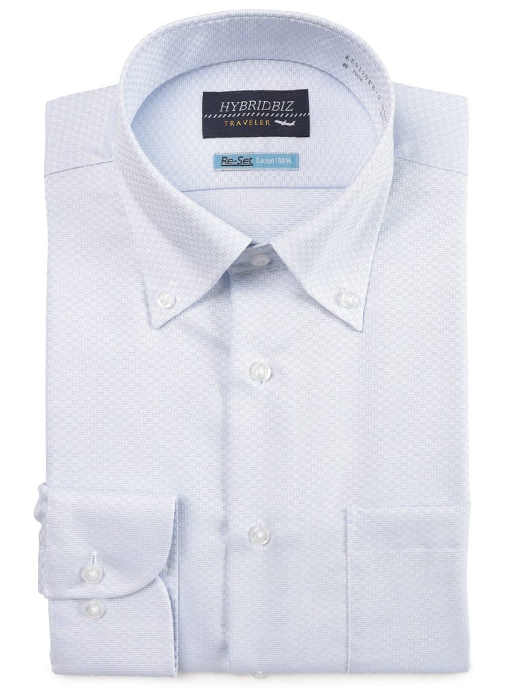 現代のビジネスシーンをスマートに生きる男性へ。HYBRIDBIZの長袖ボタンダウンワイシャツは、極上の快適さと驚くほどの利便性を両立しました。肌触り抜群の綿100%素材でありながら、画期的な形態安定ノンアイロン加工が施されているため、洗濯後はアイロンいらず。そのまま着用でき、朝の貴重な時間を有効活用できます。上質なコットンがもたらす通気性と吸湿性は、一日中快適な着心地をキープ。さりげない柄デザインが、ビジネススタイルに洗練された個性をプラスし、品格とこなれ感を演出します。きっちりとした印象を与えるボタンダウンカラーは、ノータイでも襟元が崩れず、クールビズスタイルにも最適。胸元には便利な外側ポケットを配置し、機能性も兼ね備えています。快適さ、手軽さ、そしてスタイリッシュさを追求したこの一枚が、あなたのビジネスシーンを力強くサポートします。